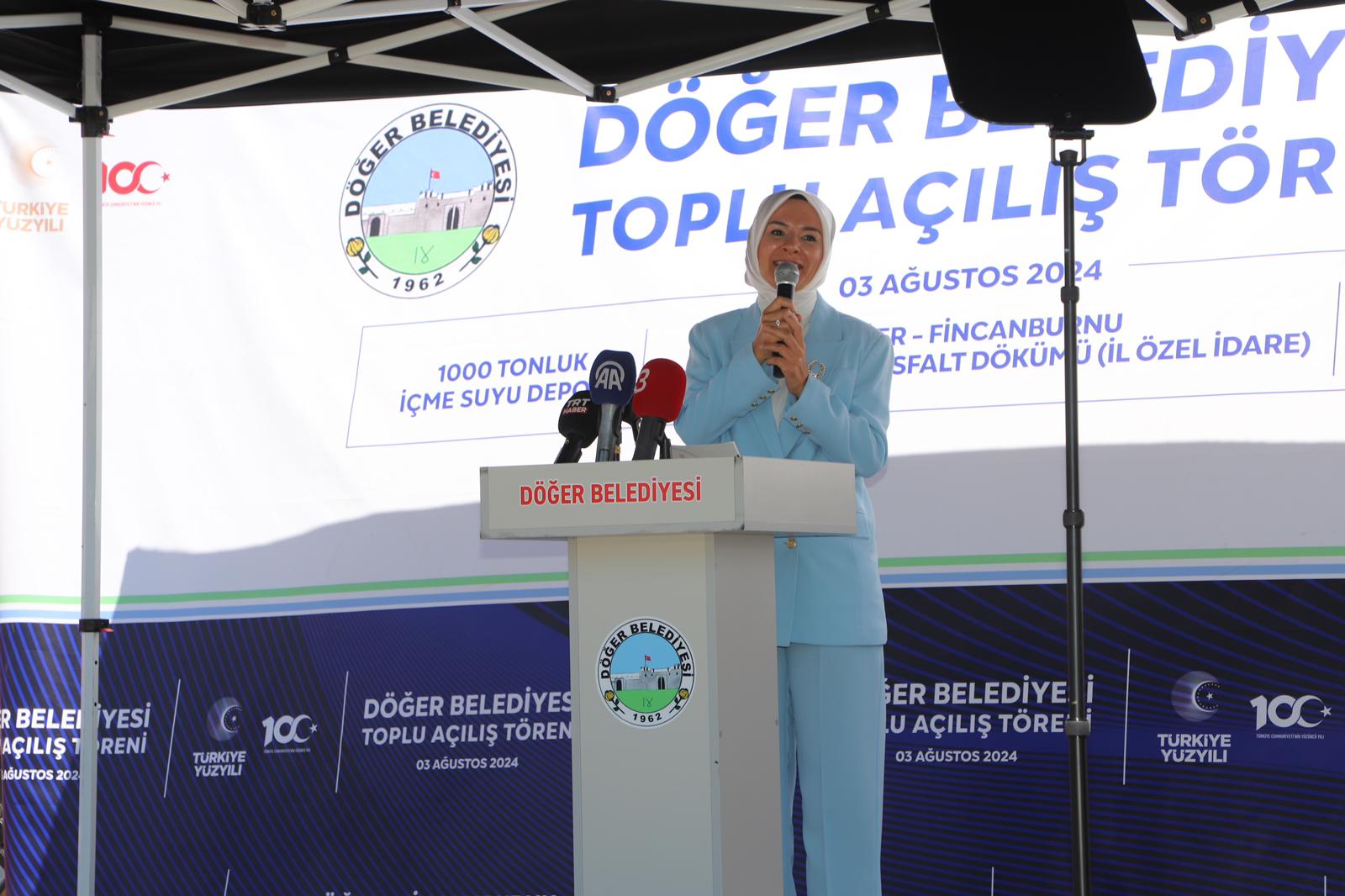 Döğer Belediyesi tarafından yapılan hizmetlerin toplu açılış töreninde konuşan Aile ve Sosyal Hizmetler Bakanı Mahinur Özdemir Göktaş, “Türkiye’yi daha da güçlü, huzurlu ve refah içinde kılmak için tüm çalışmalarımızı, aile odaklı bir bakış açısıyla yürütüyoruz. Çünkü şunu çok iyi biliyoruz ki güçlü aile demek, güçlü Türkiye demektir” dedi.