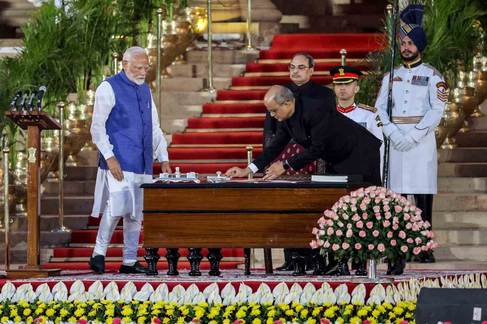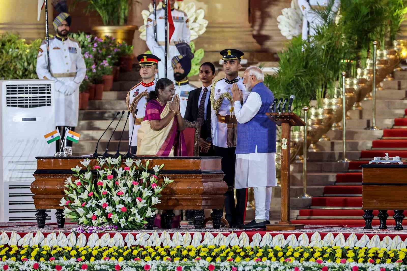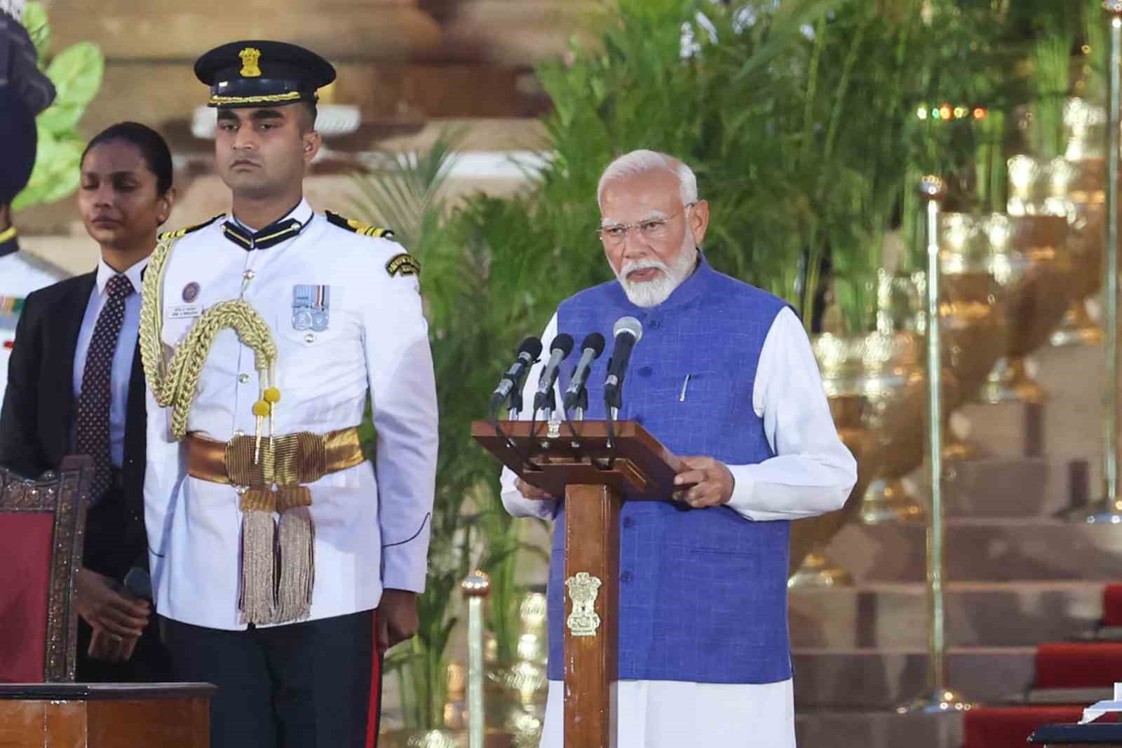 Hindistan’da 9 Nisan’da başlayıp 1 Haziran’da sona eren genel seçimlerden zaferle ayrılan Narendra Modi Cumhurbaşkanlığı Sarayı’nda düzenlenen törende yemin ederek 3. dönem başbakanlık görevine resmen başladı.