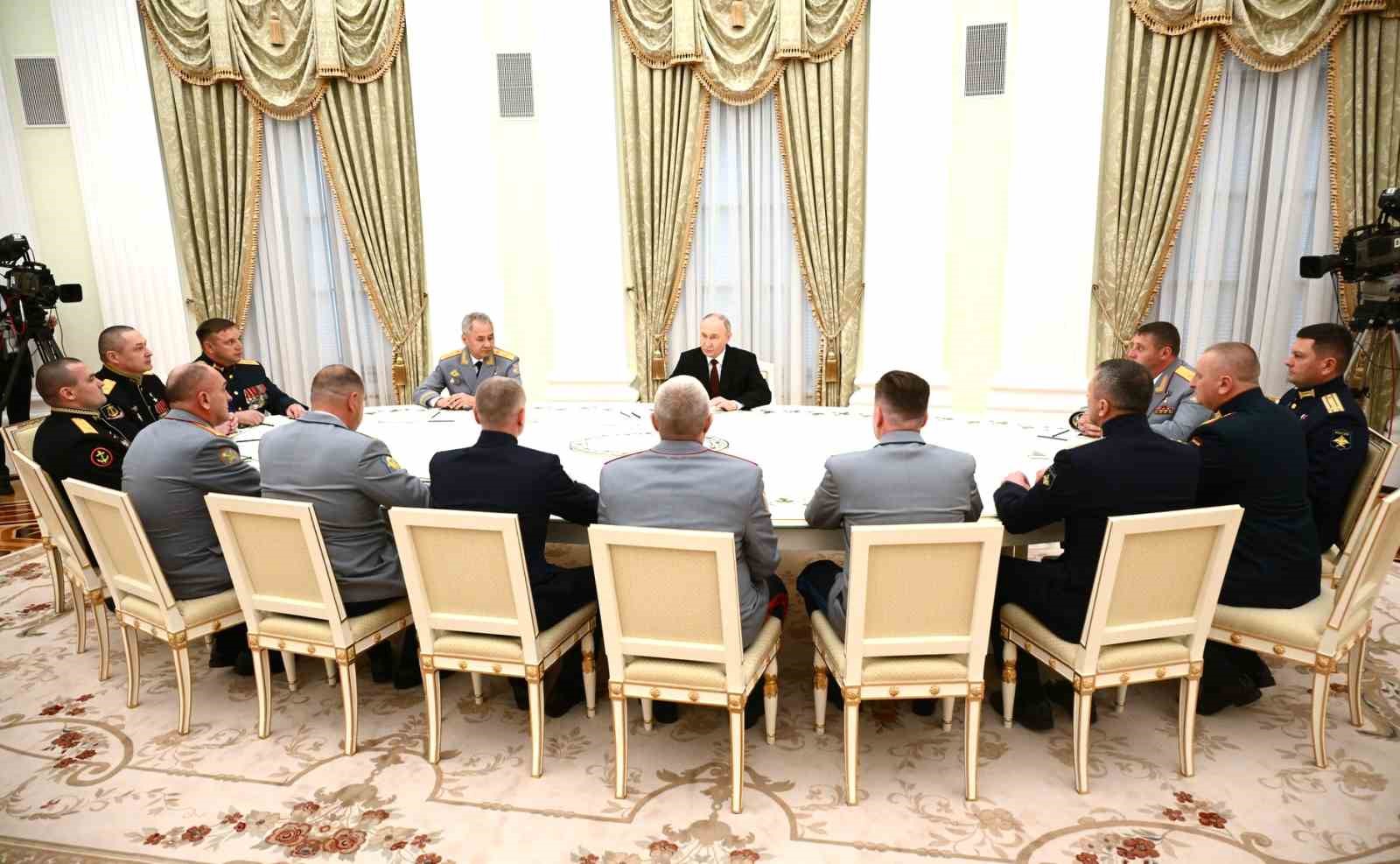 Rusya Devlet Başkanı Vladimir Putin, Ukrayna’daki çatışmalarda görevli birliklerin komutanlarıyla Kremlin Sarayı’nda toplantı yaptı. Rusya Savunma Bakanı Sergey Şoygu’nun da yer aldığı toplantıda, Ukrayna’daki operasyonların başarıya ulaşması gerektiğini ve bu hedefle hareket ettiklerini belirten Putin, “Ülkenin kalkınması için tüm başarılarımızın temeli olan ekonomi alanında, sosyal alanda, Rusya’daki aileleri güçlendirme, sağlık ve eğitim alanında önemli görevlerimiz var. Tüm bu görevlerin eksiksiz olarak yerine getirilmesini sağlamak için her türlü fırsata, kesinlikle her türlü fırsata sahibiz. Ancak yalnızca tek bir şart var, o da muharebe sahasındaki başarılı çalışmalarınız. Bugün itibarıyla ana unsur bu” dedi.