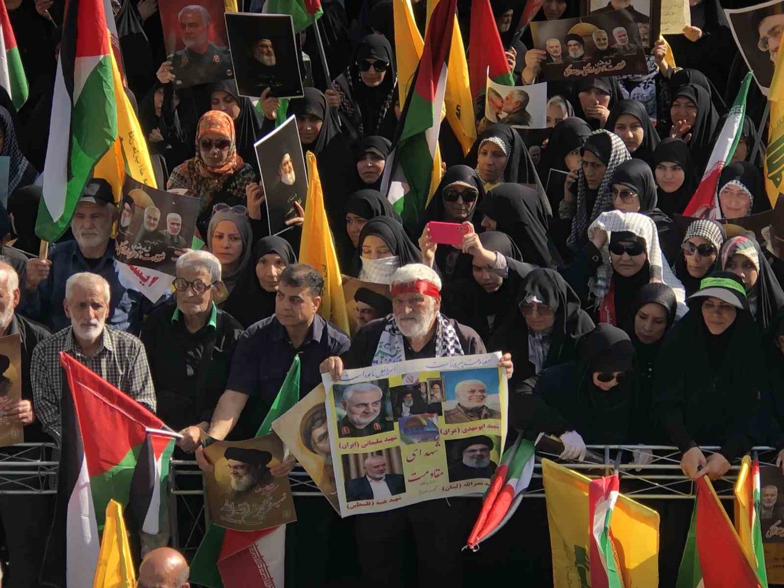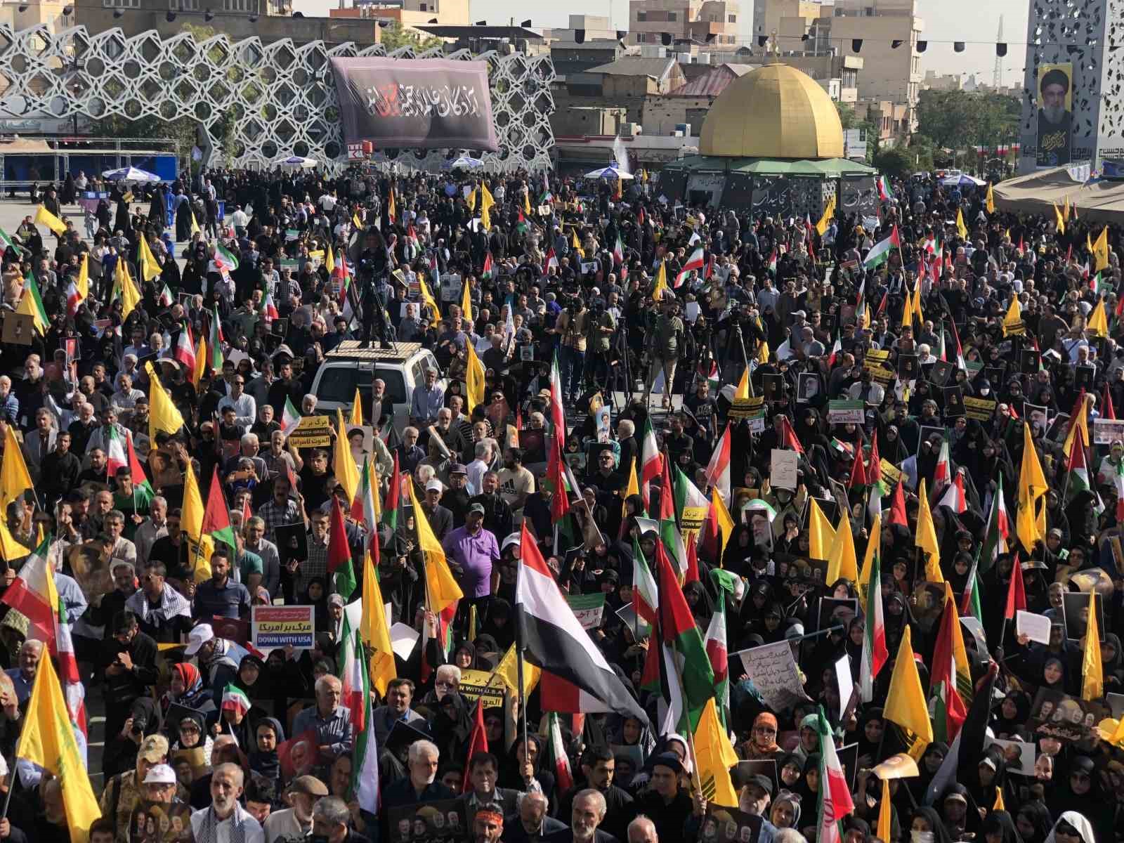 Tahran Cuma İmamı Ahmet Hatemi gösteride yaptığı konuşmada, “Gerçek Vaad 2 Operasyonu asla durup sessiz kalmayacağımızın dünya emperyalizmine bir uyarısıdır. Zalim, soykırımcı ve çocuk katili bu vahşi rejim yok edilmelidir. Zalimleri yok etme hedefine ulaşana kadar bu yolda kararlılıkla ilerlemeye devam edeceğiz” dedi.