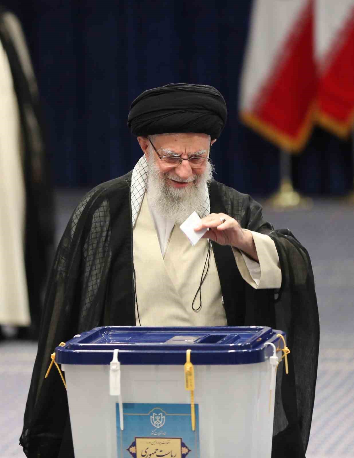İran Dini Lideri Ayetullah Ali Hamaney de başkent Tahran’da bulunan İmam Humeyni Hüseyniyesi’nde basın mensupları önünde oyunu kullandı. Oy verme işleminin ardından açıklama yapan Hamaney, “Biz İranlılar için seçimler mutlu bir gün. Dünyada İran İslam Cumhuriyeti’nin onuru ve gururu seçimlere katılıma bağlı. Bunun için halkımıza tavsiyem sandıklara gitmeyi ve oy kullanmayı ciddiye almaları ve seçimlere katılmalarıdır” ifadelerini kullandı.