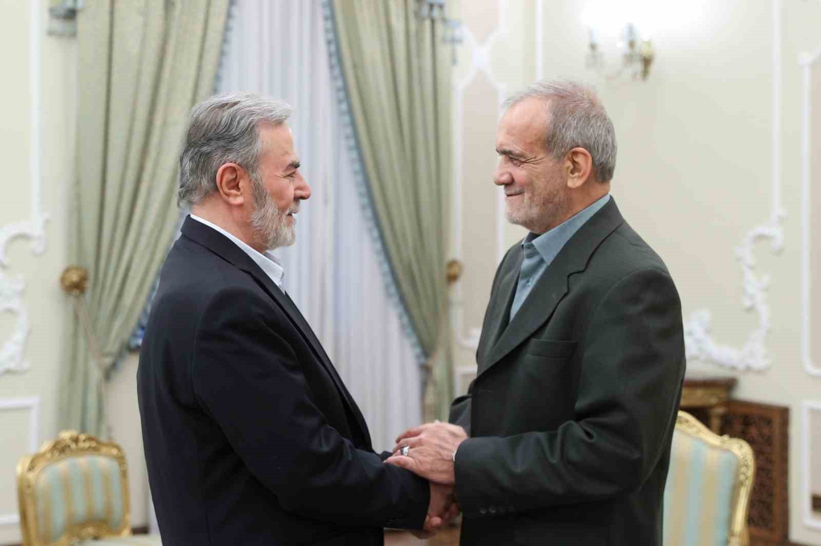 Haniye ise Pezeşkiyan ile görüşmesine değinerek, “Filistin ve direniş güçleri konusunda bir kez daha İran’ın güçlü desteğini ve duruşunu görmüş olduk. Bu duruşunuzdan dolay gurur duyduk” dedi. Hamaney ile görüşmesinde Filistin direniş grupları arasındaki vahdete işaret eden İslami Cihat lideri Ziyad el Nakhalah ise Haniye ile birlikte Tahran’da bir arada olmaktan mutluluk duyduğunu belirtti.