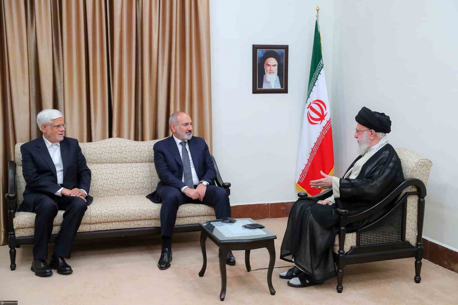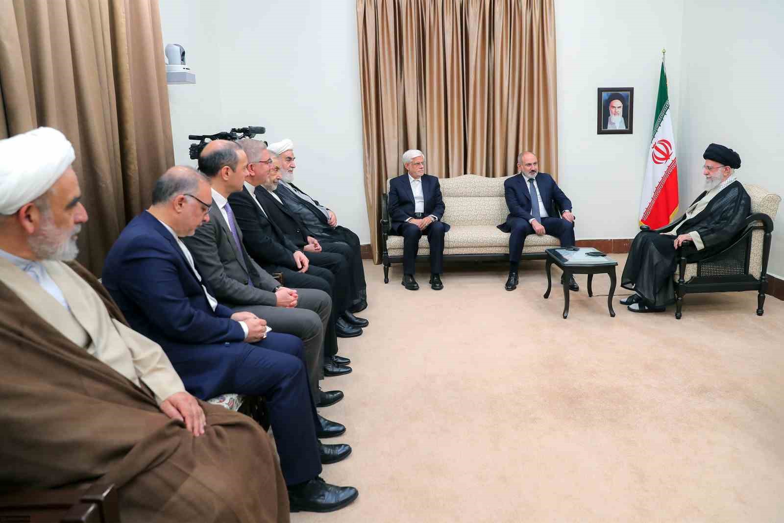 Hamaney, Ermenistan Başbakanı Nikol Paşinyan ile görüşmesinde ülkenin toprak bütünlüğünü desteklediklerini belirterek bu konudaki duruşlarının değişmediğini söyledi. Hamaney, “Ülkelerin güvenliğini ve barışını sağlayan şey kendilerine ve yakınlarına güvenmeleridir. Bu coğrafyadan olmayan ülkelerin müdahaleleri bölgeye zarar vermektedir” ifadelerini kullandı.