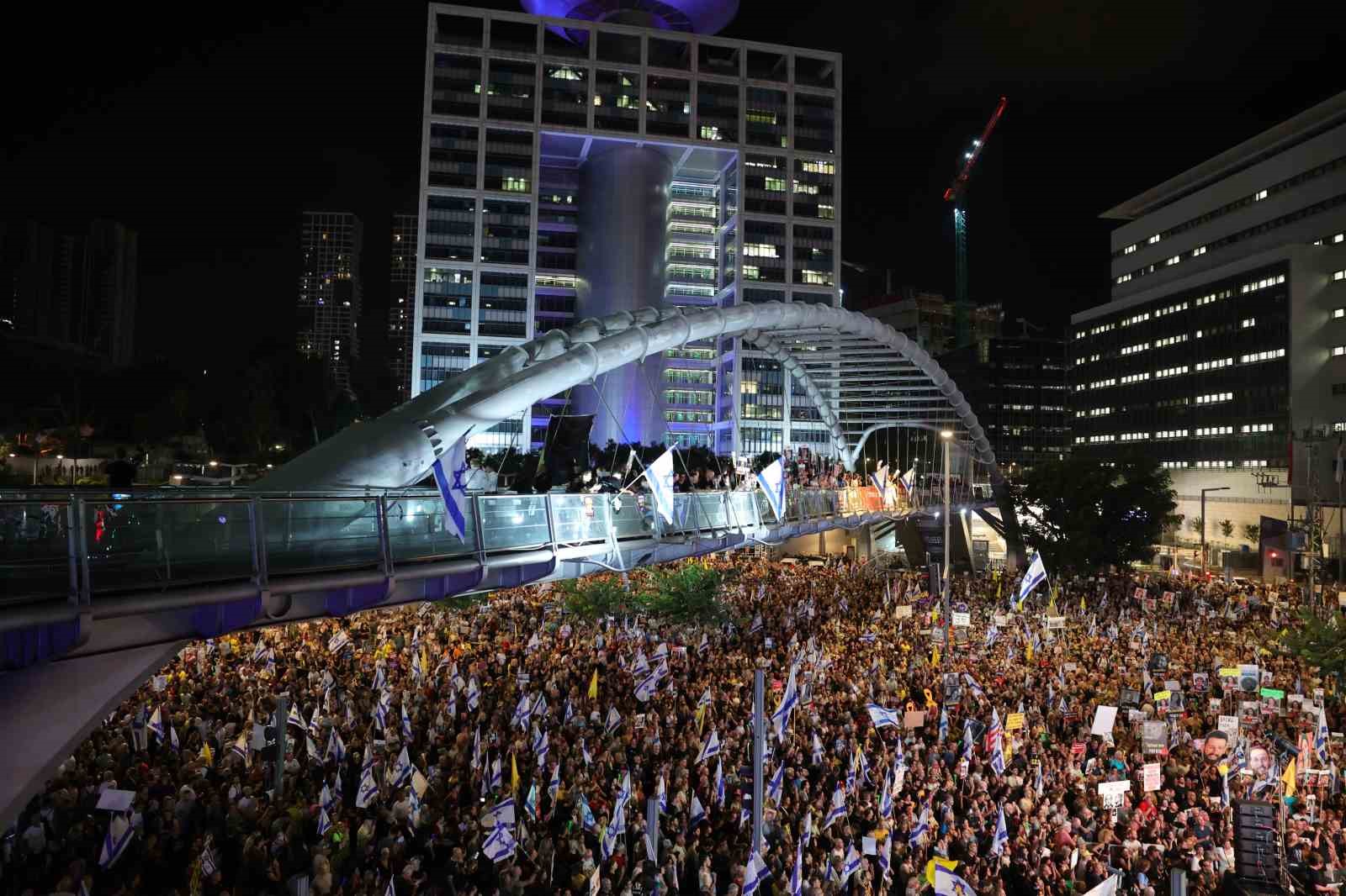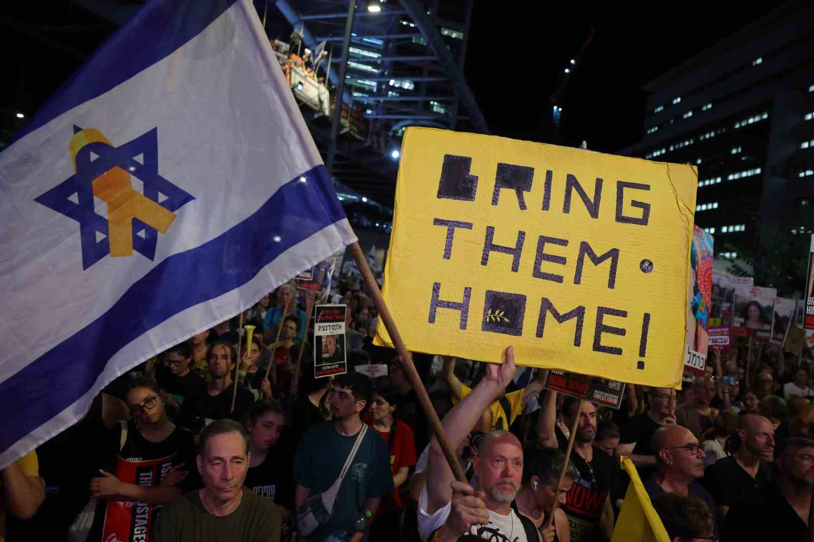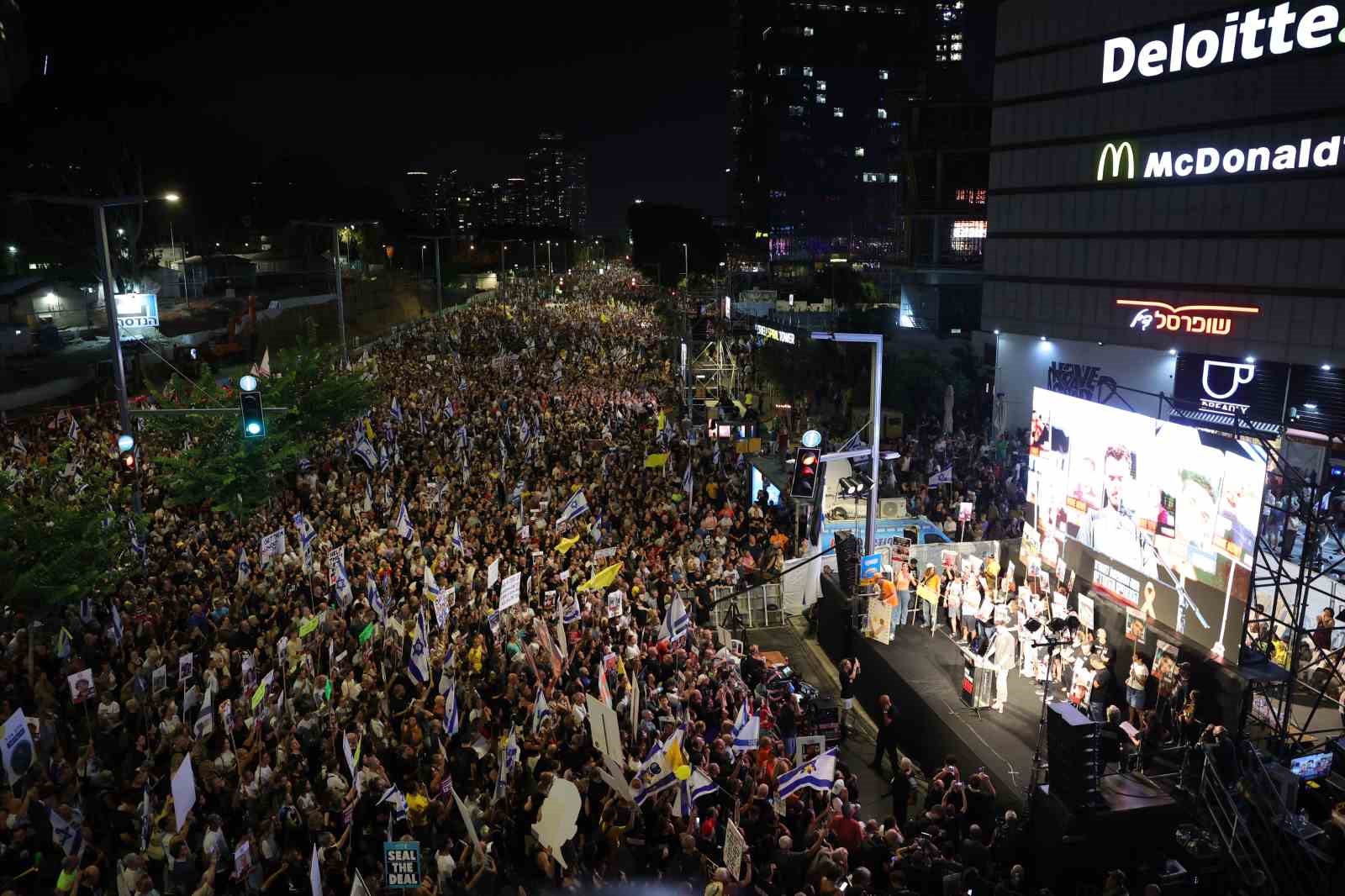 İsrail’in başkenti Tel Aviv’de yaklaşık 500 bin kişinin katıldığı ateşkes gösterisinde Başbakan Binyamin Netanyahu ve hükümetine anlaşmaya imza atmaları çağrısı yapıldı.