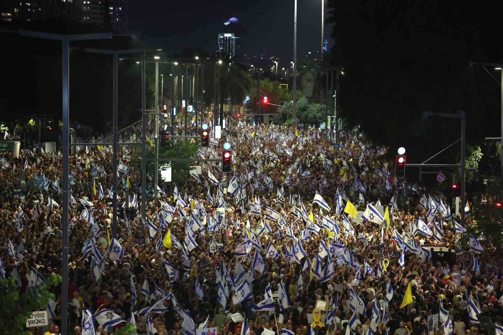 İsrail’de Başbakan Binyamin Netanyahu ve hükümetine tepkiler sürüyor. Gazze Şeridi’nde 6 esirin ölümünün ardından başkent Tel Aviv’de şiddetlenen gösteriler bugün de gerçekleşti. Yaklaşık 500 bin kişi Netanyahu’ya ateşkes ve esir anlaşmasına imza atması için çağrı yaptı. Protesto gösterisinde, “Philadelphia Koridoru esir çıkmazına dönüşüyor”, “Onları eve getirin”, “Binyamin Netanyahu İsrail’i öldürüyor” pankartları taşıyan göstericiler, Netanyahu aleyhinde sloganlar attı.