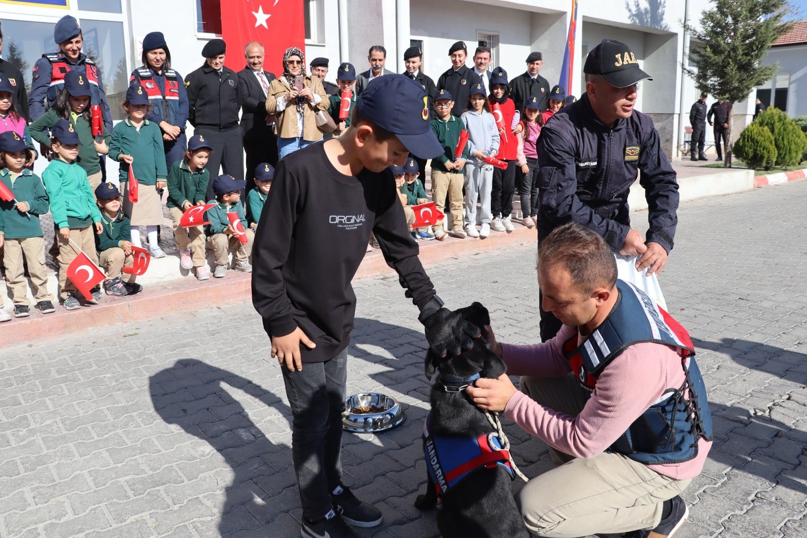 Cumhuriyetin 100’ncü yılı etkinlikleri çerçevesinde İçişleri Bakanlığı güvenlik teşkilatlarının taşradaki birimlerinin kentlerde eğitim gören öğrencilere ziyaret ettirilmesi projesi sürüyor. Afyonkarahisar İl Jandarma Komutanlığı tarafından kurumda misafir edilen 30 ilköğretim öğrencisine jandarma asayiş, trafik, arama kurtarma-bomba arama-narkotik köpek unsurları, olay yeri inceleme timi ve jandarma komando timlerinin yaptığı işler hakkında bilgilendirme yapıldı. Öğrencilere programın sonunda jandarma şapkası, boyama kitabı, tohumlu kalem, balon ve Türk bayrağı hediye edildi.