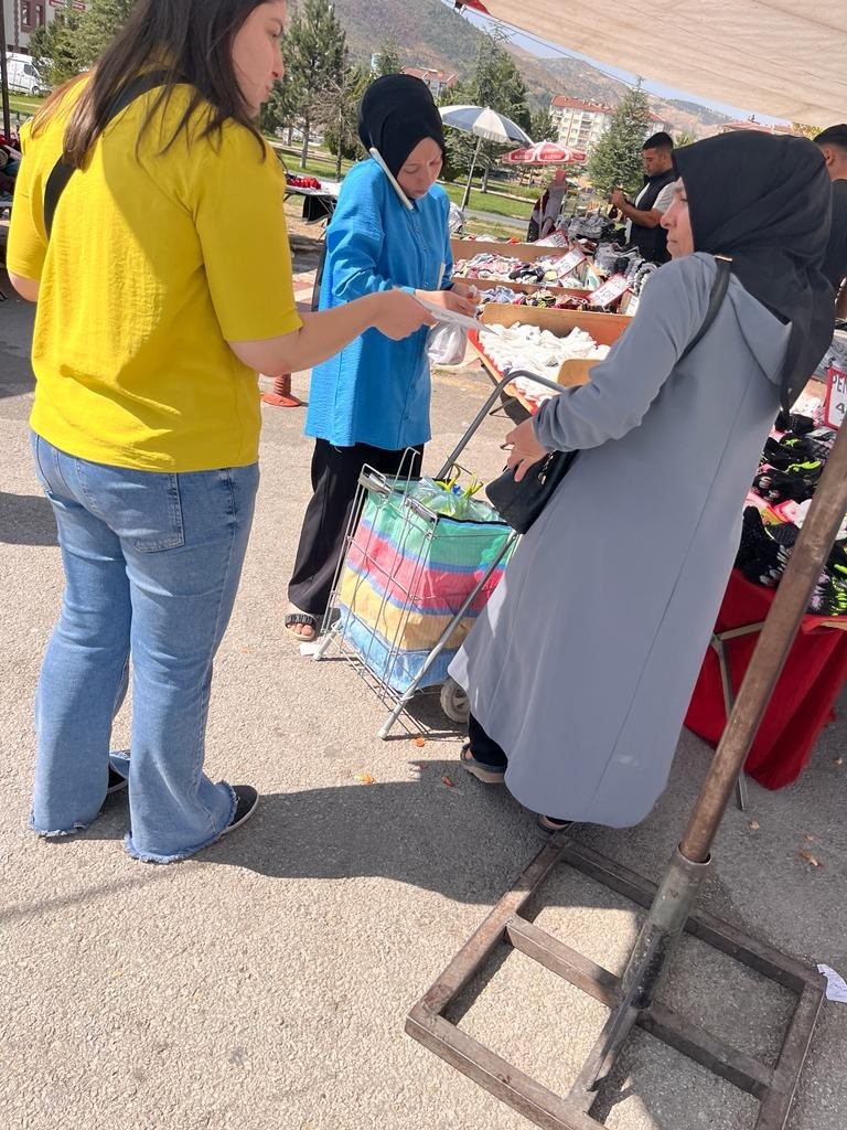 Afyonkarahisar Aile ve Sosyal Hizmetler İl Müdürlüğüne bağlı ekipler tarafından semt pazarında kadına yönelik şiddet konusunda vatandaşlara bilinçlendirici broşürler dağıtıldı.