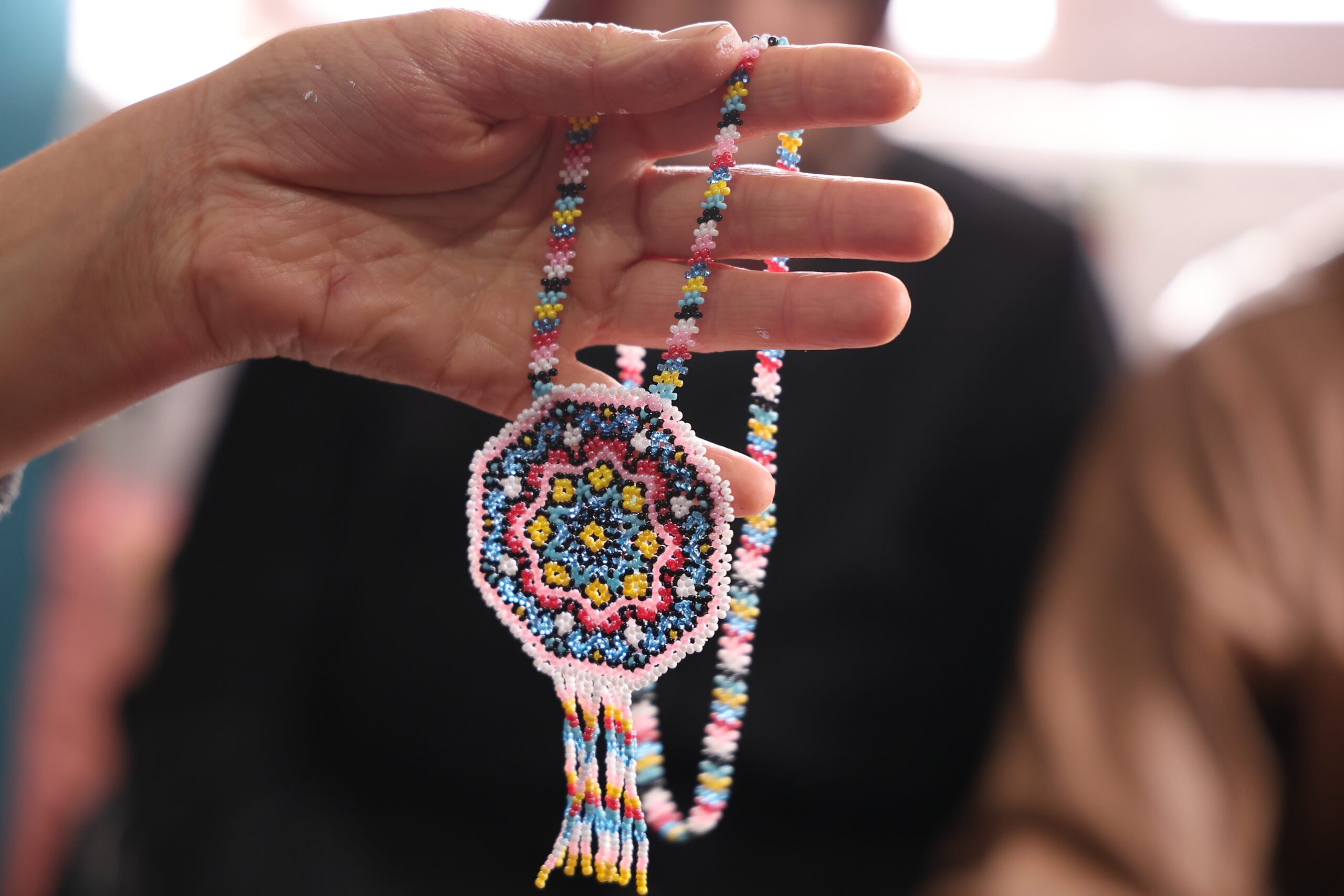 Halk Eğitim Merkezi Harput Sergi Salon Sorumlusu Ayfer Vural, “Burada her şey üretiyoruz. İğne oyasından kolyeye, cezaevi tekniğinden, amigurumiye kadar yapıyoruz. Kolyeler, seramik ve ahşap boyama, tel kırma, çantalar, iğne oyası olmak üzere akla gelen her şeyi yapıyoruz. Cumhurbaşkanımıza bir seccade yaptık. Şuanda Katar emirinde bile o seccademiz istendi. Buradaki 60 kadın çok güzel çalışıyor. Kışın üretip, yazın satışa çıkartıyorlar. Kadınlarımıza çok güzel bir destek. Bir fon gibi oluyor” şeklinde konuştu.