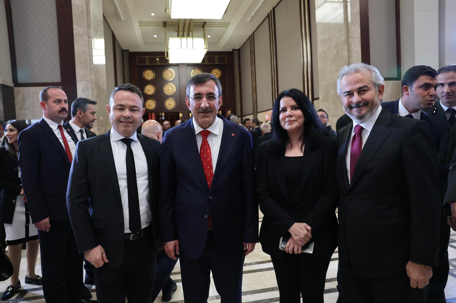 Kanal 3 yönetimi, resepsiyon kapsamında Cumhurbaşkanı Yardımcısı Cevdet Yılmaz ile hatıra fotoğrafı çektirerek bu özel geceye anlamlı bir anı bıraktı.