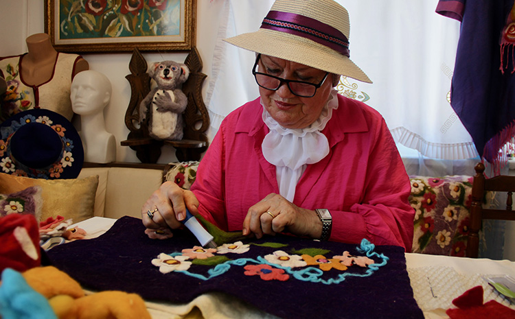 Bursa’da yaşayan ressam Mükerrem Turhan, tuval olarak kullandığı keçelerin üzerine boya yerine yün parçalarıyla resimler yapıyor.