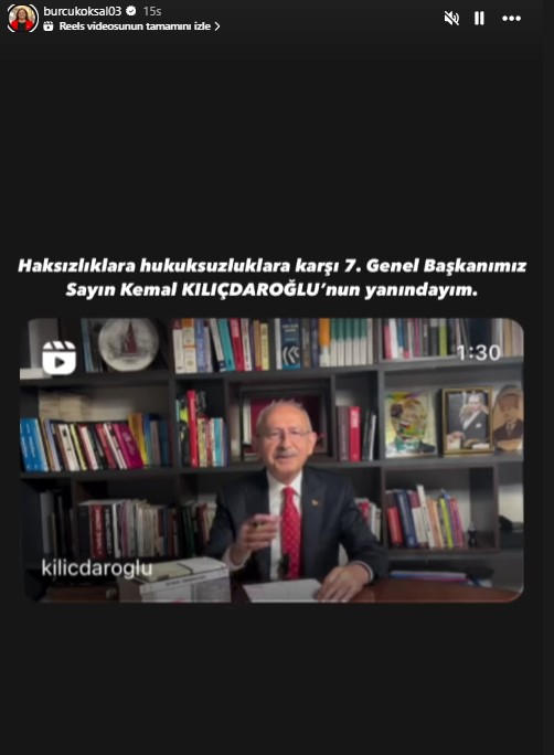 Afyonkarahisar Belediye Başkanı Burcu Köksal, İnstagram hesabından Kemal Kılıçdaroğlu’na desteğini açıkladı.