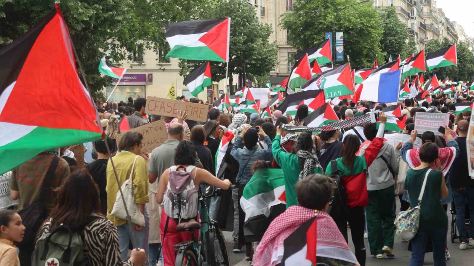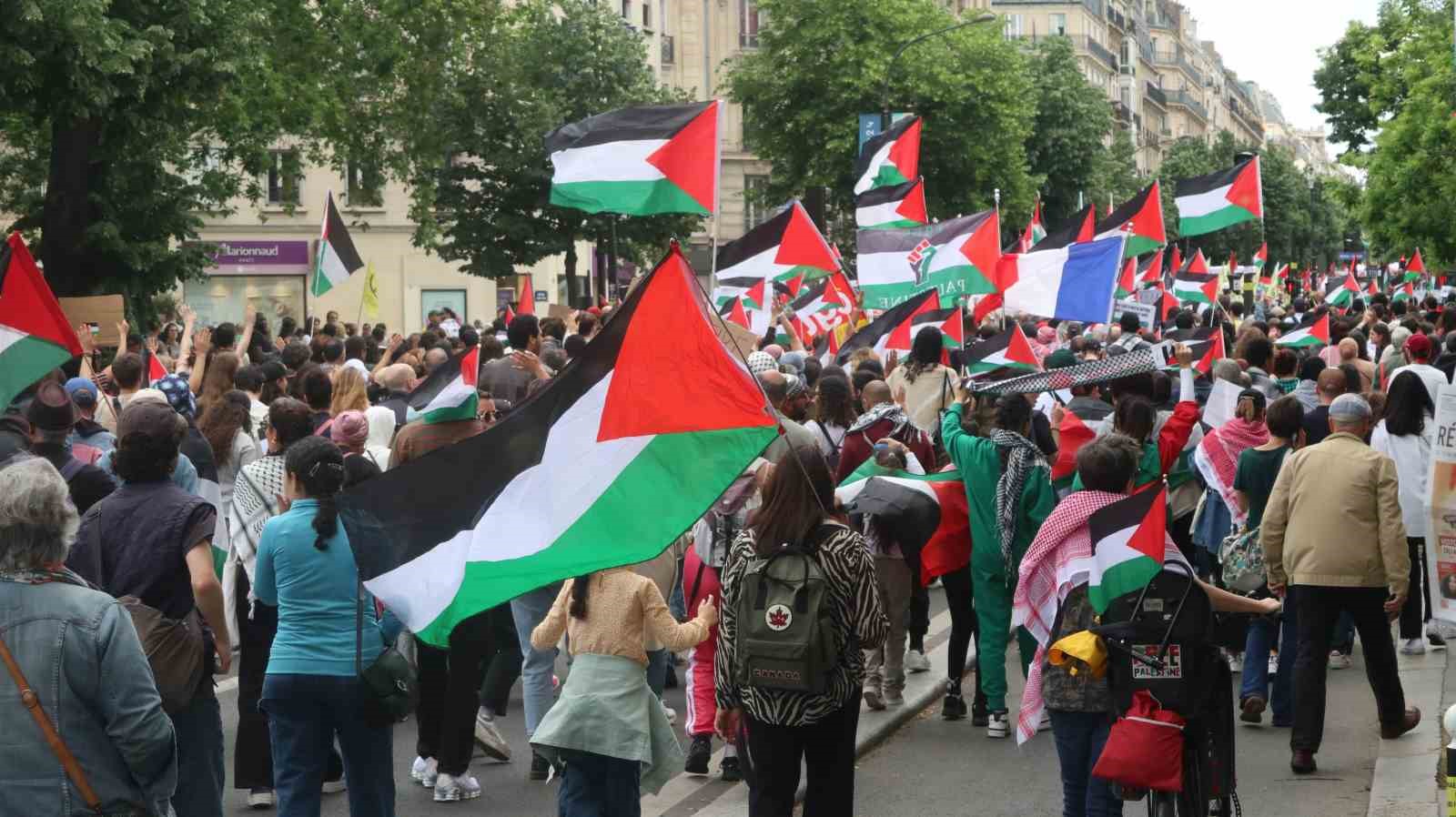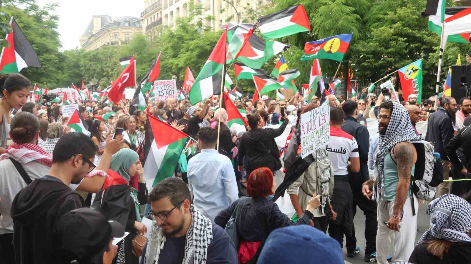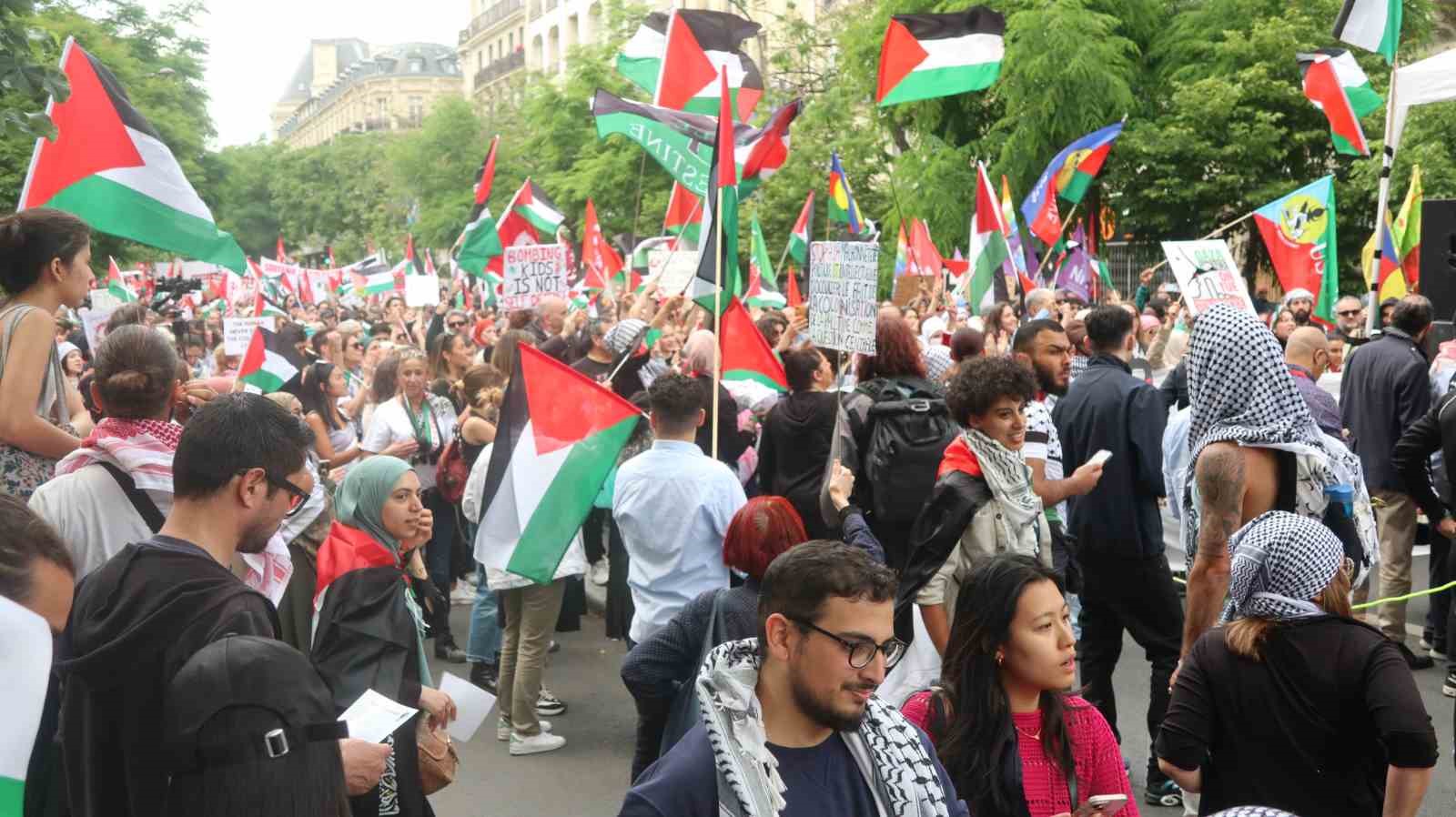 Paris’te Filistin’e destek İsrail’e tepki: “Masum çocukları öldürmekten vazgeçin”
