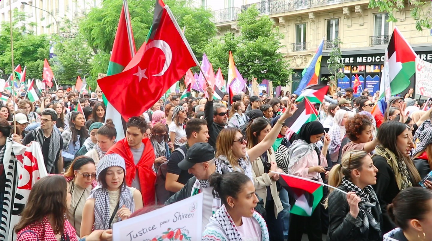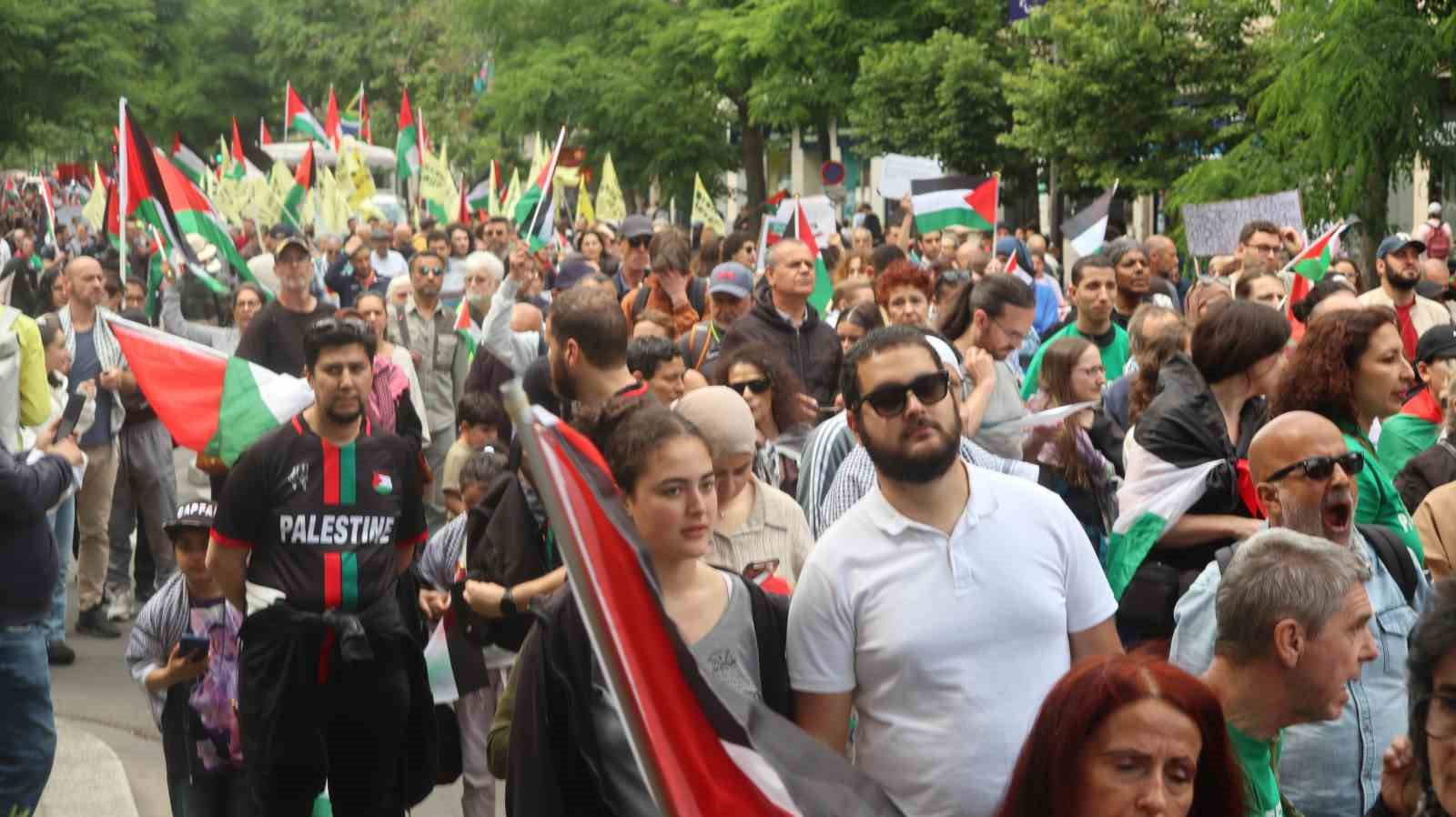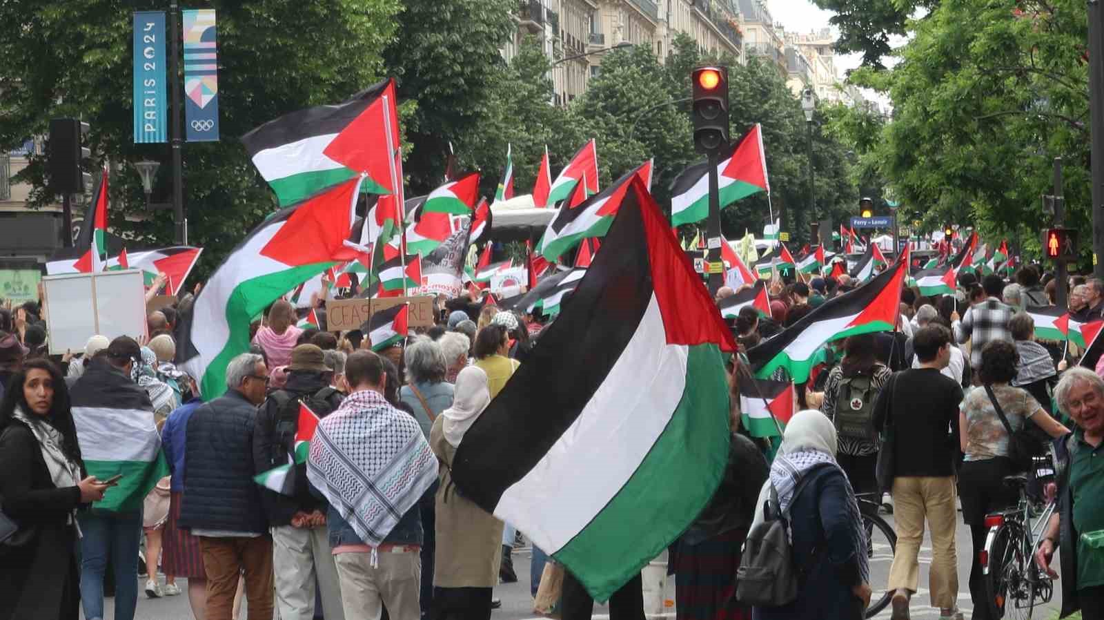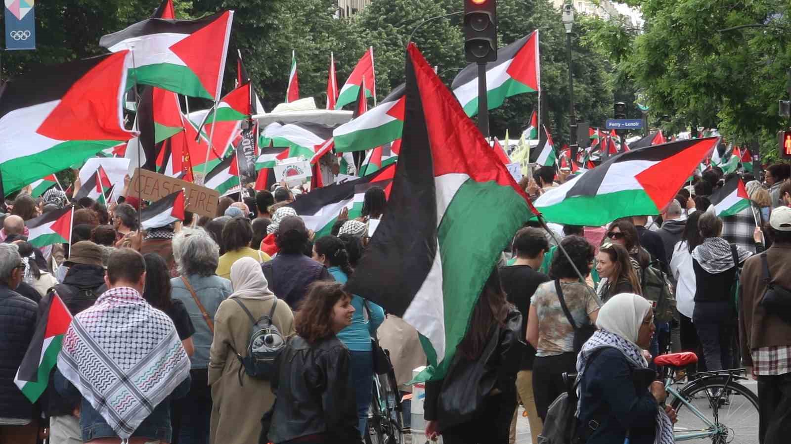 Paris’te Filistin’e destek İsrail’e tepki: “Masum çocukları öldürmekten vazgeçin”
