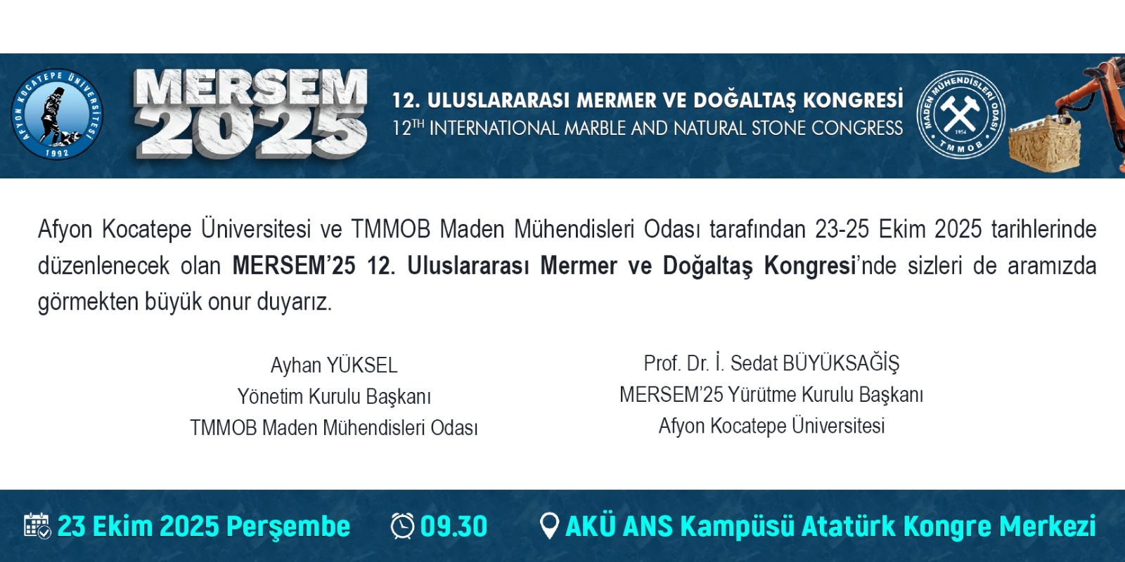 MERSEM 2025, Afyonkarahisar’ı “mermerin başkenti” olarak konumlandıran bir platform olarak öne çıkıyor. Kongre, sektörün geleceğini şekillendirecek paneller, bilimsel bildiriler ve sergilerle dolu üç gün sürecek. TMMOB Maden Mühendisleri Odası Yönetim Kurulu Başkanı Ayhan Yüksel ile AKÜ’den Prof. Dr. İ. Sedat Büyüksağiş’in yürütme başkanlığını yaptığı etkinlik, disiplinler arası bir yaklaşım benimsiyor. Mimarlık, iç tasarım, arkeoloji ve restorasyon gibi alanlar da kapsanacak.