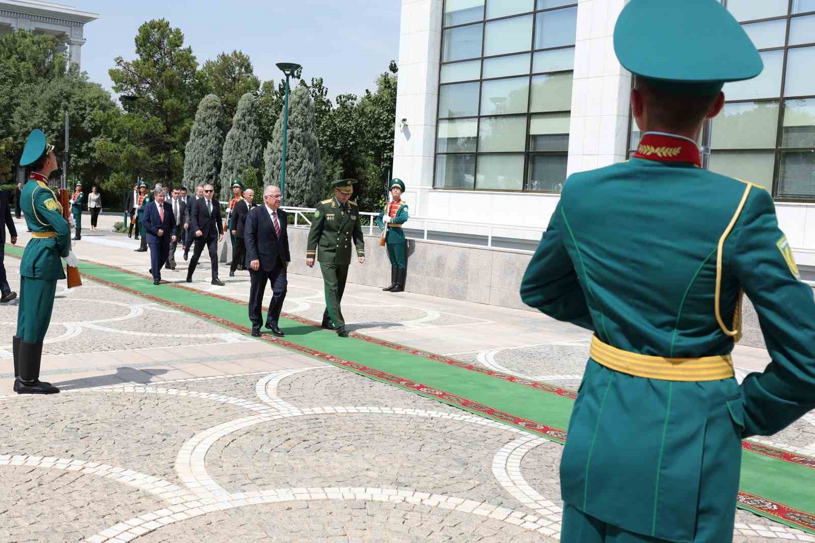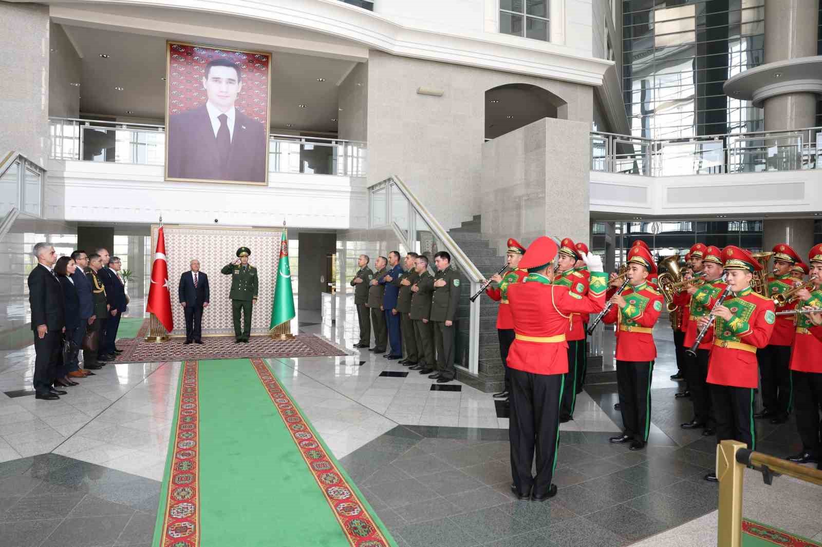 Bakan Güler, daha sonra Türkmenistan Savunma Bakanlığına geçerek mevkidaşı Begenç Gündogdiyev tarafından askeri törenle karşılandı.