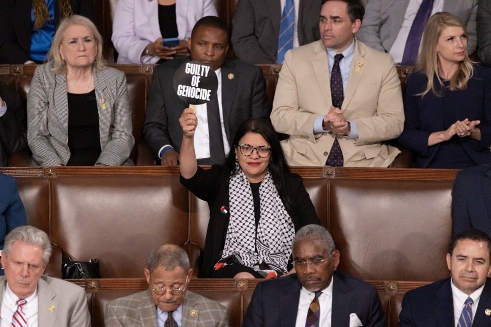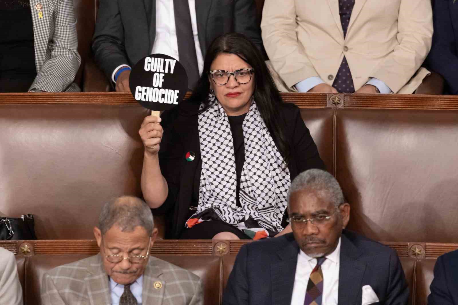 Temsilciler Meclisi’nin Müslüman kadın üyesi Tlaib’ten dövizli tepki: “Soykırım Suçlusu”