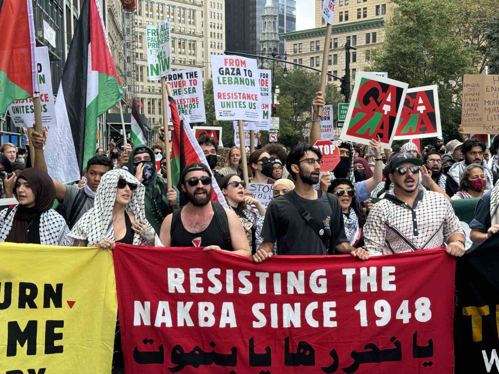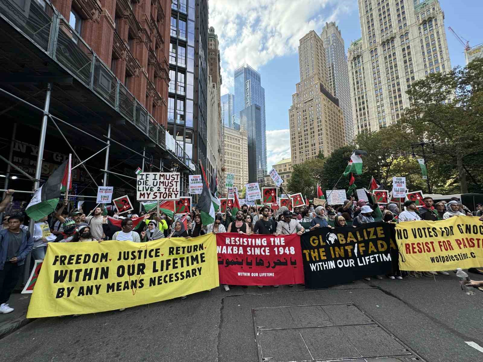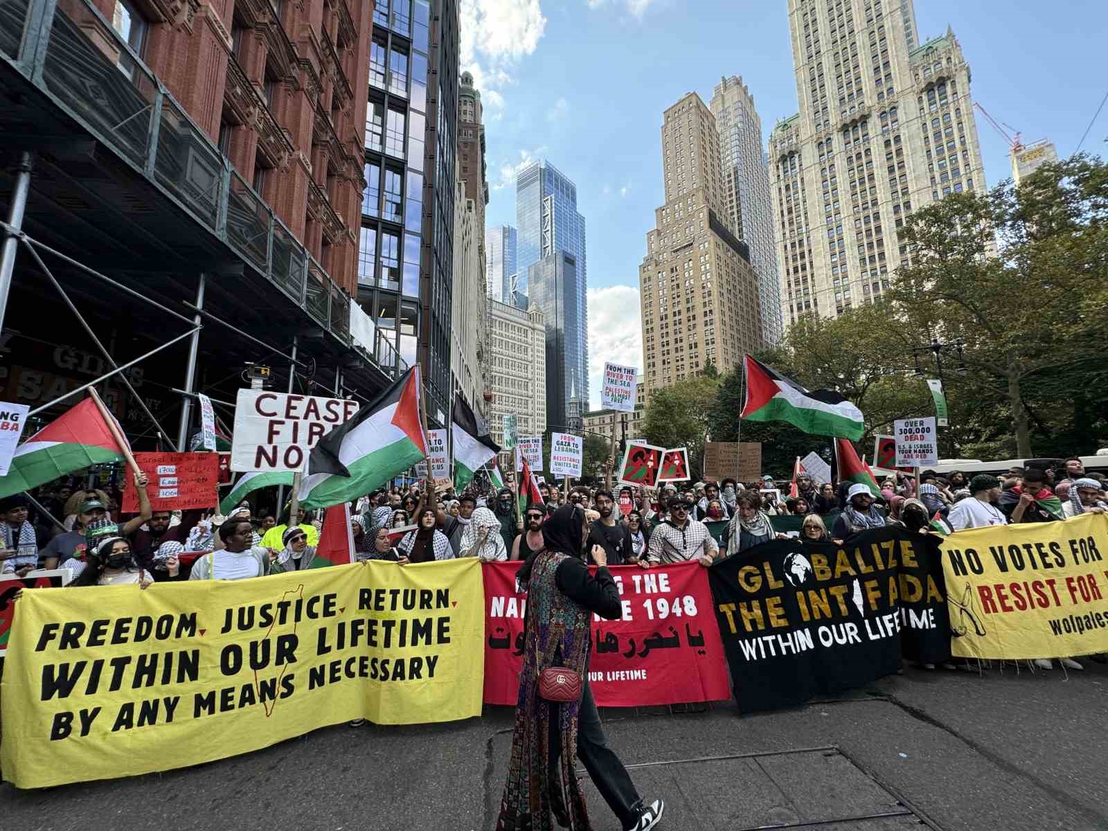 New York’ta binlerce Filistin yanlısı gösterici, İsrail’in Filistin’e yönelik saldırılarının birinci yıl dönümünü protesto etmek için sokaklara çıktı. 7 Ekim 2023’te başlayan İsrail saldırılarının yıl dönümünde, Gazze’de yaşanan insanlık dramına dikkat çeken göstericiler, şiddetin bir an önce sona ermesi için ateşkes çağrısı yaptı ve ABD’nin İsrail’e yönelik silah yardımlarının kesilmesini talep etti.
