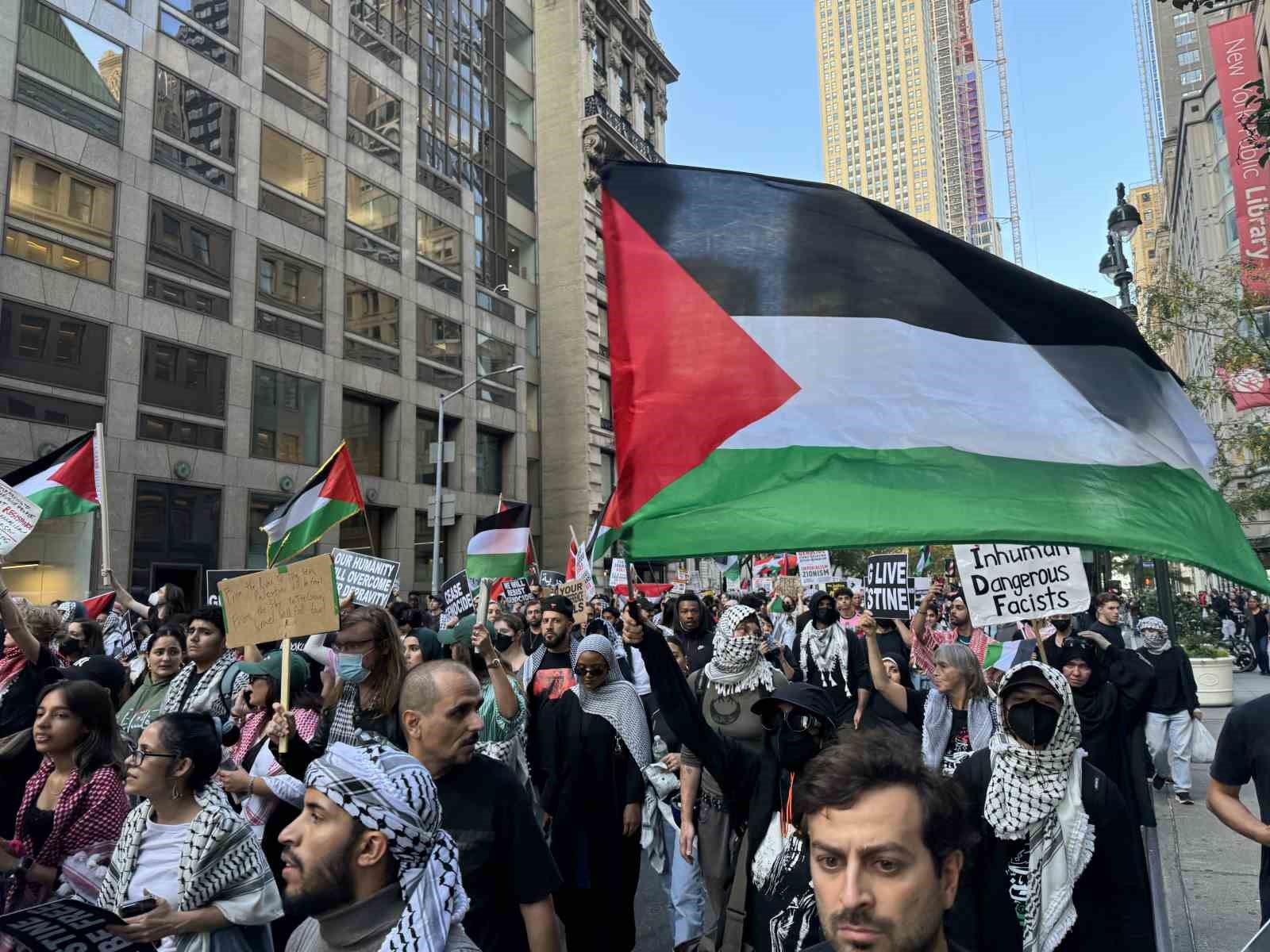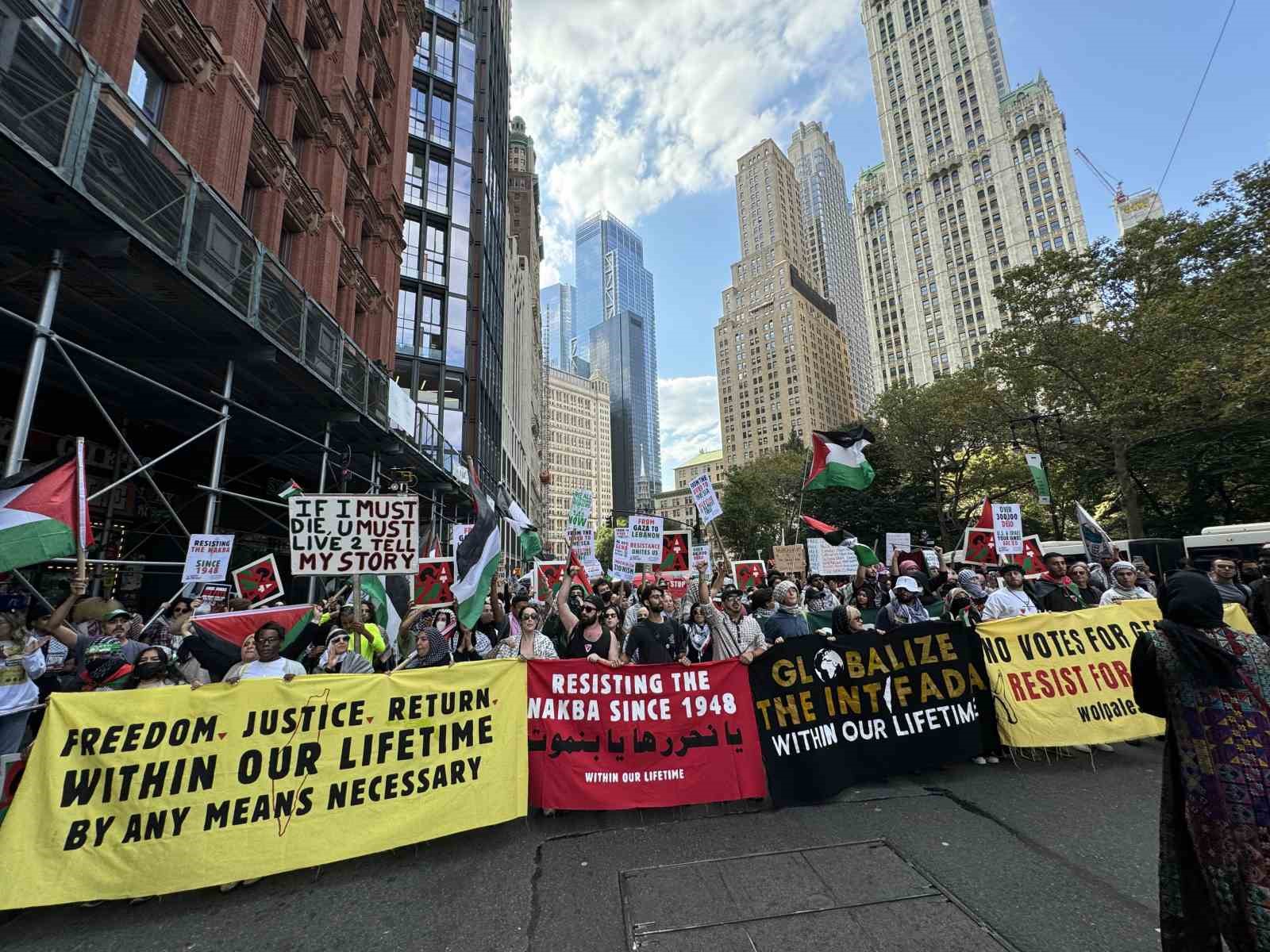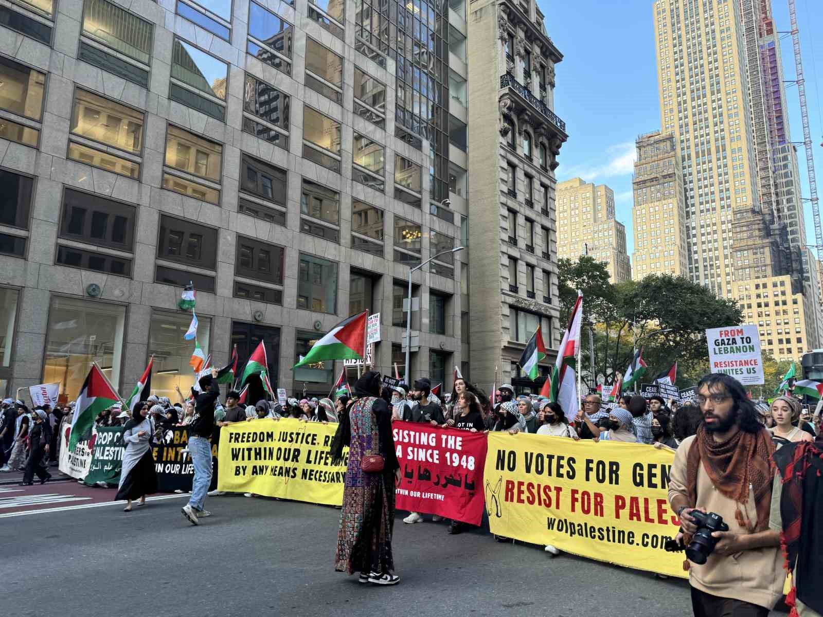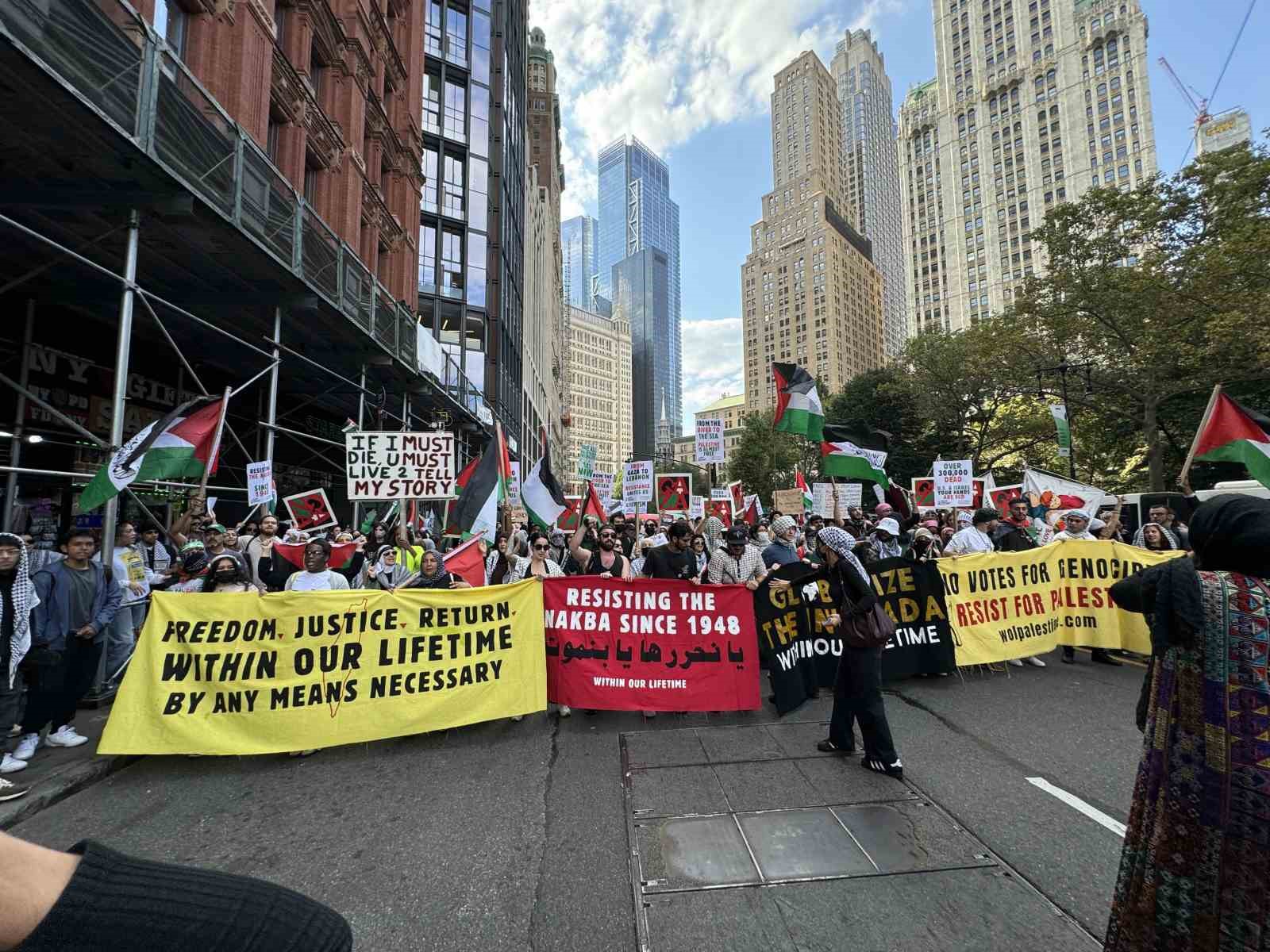 New York’ta binlerce Filistin yanlısı gösterici, İsrail’in Filistin’e yönelik saldırılarının birinci yıl dönümünü protesto etmek için sokaklara çıktı. 7 Ekim 2023’te başlayan İsrail saldırılarının yıl dönümünde, Gazze’de yaşanan insanlık dramına dikkat çeken göstericiler, şiddetin bir an önce sona ermesi için ateşkes çağrısı yaptı ve ABD’nin İsrail’e yönelik silah yardımlarının kesilmesini talep etti.