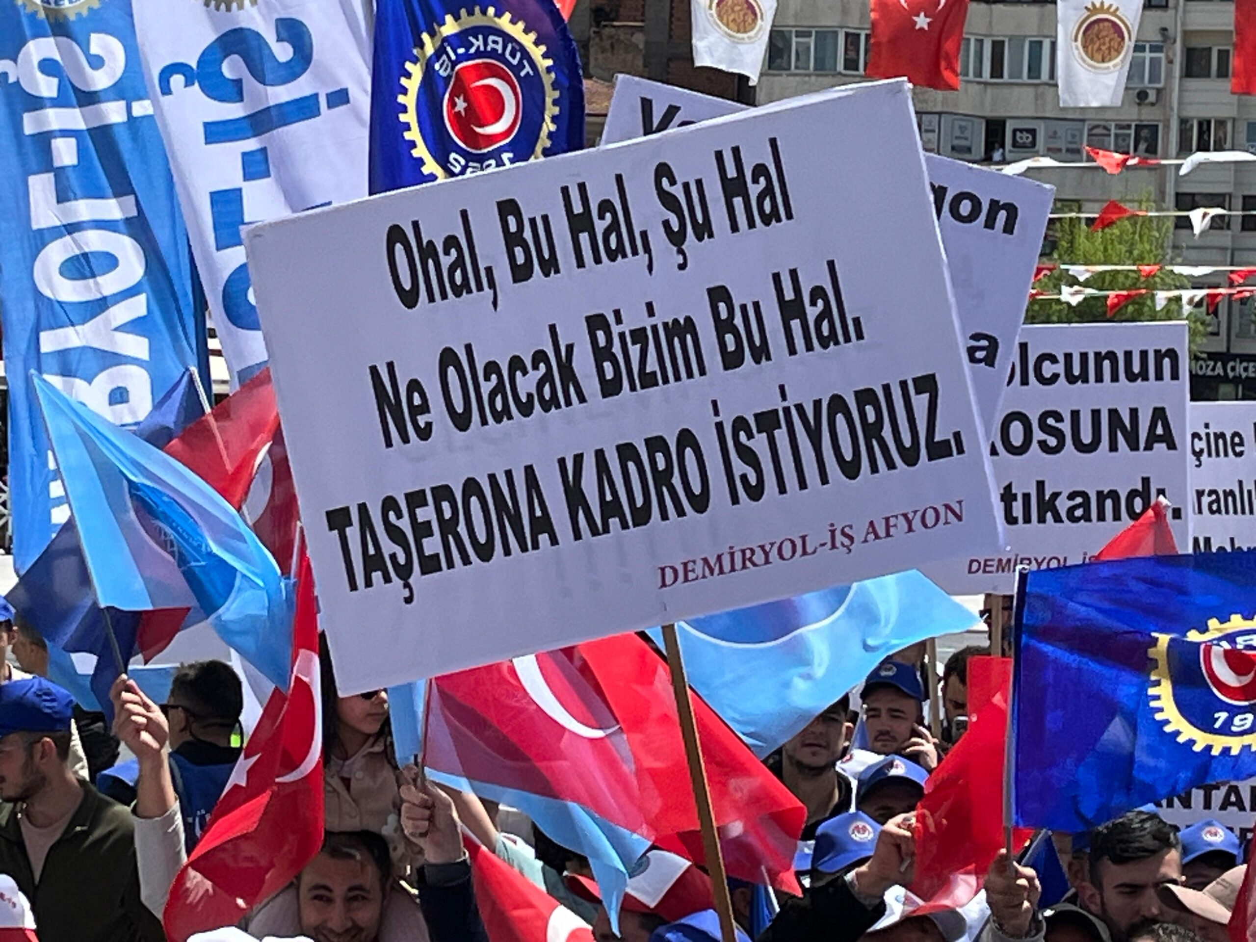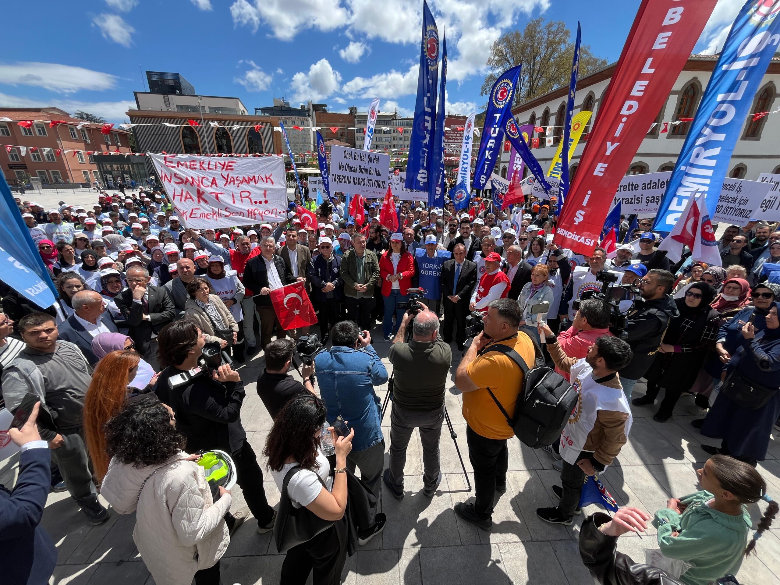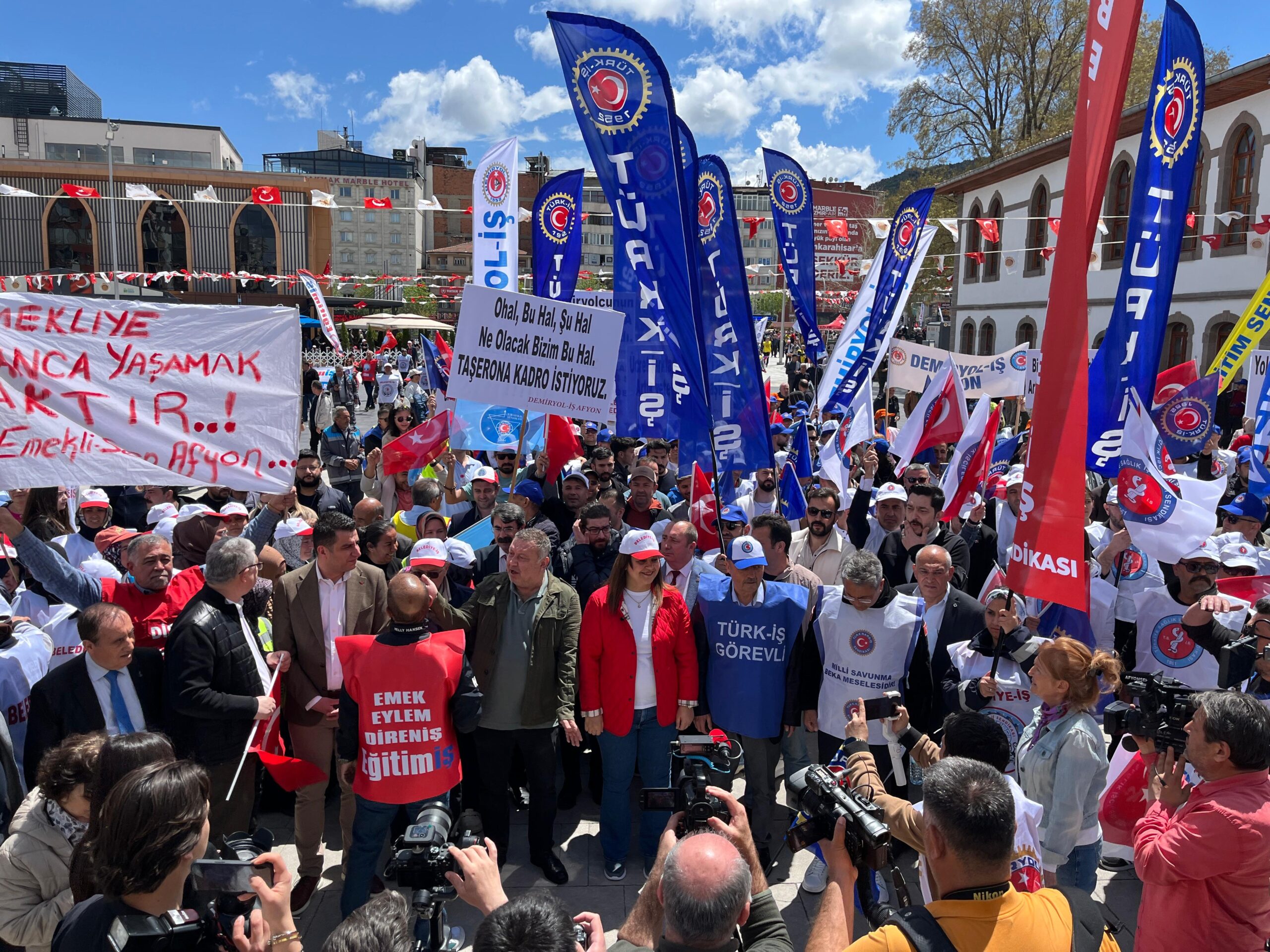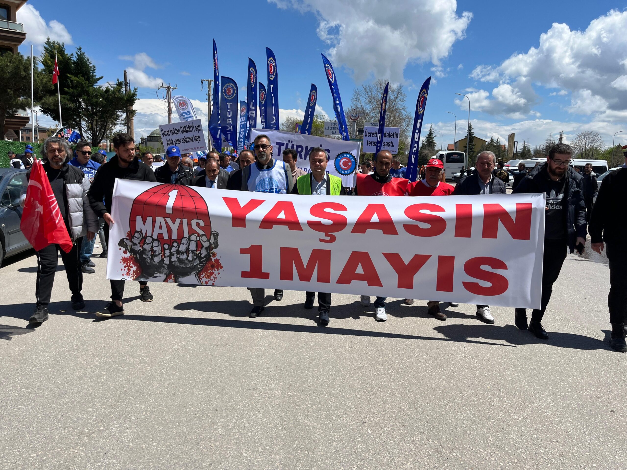 1 Mayıs İşçi Bayramı dolayısıyla Türk-İş, KESK, Eğitim-İş, Emekliler Dernekleri ve CHP’nin katılımı ile yürüyüş düzenlendi. Afyon Garı’nın önünden başlayan yürüyüş, Ordu Bulvarı, Yeşilyol ve Kurtuluş Caddesi üzerinden Zafer Meydanı’nda sonlandı.