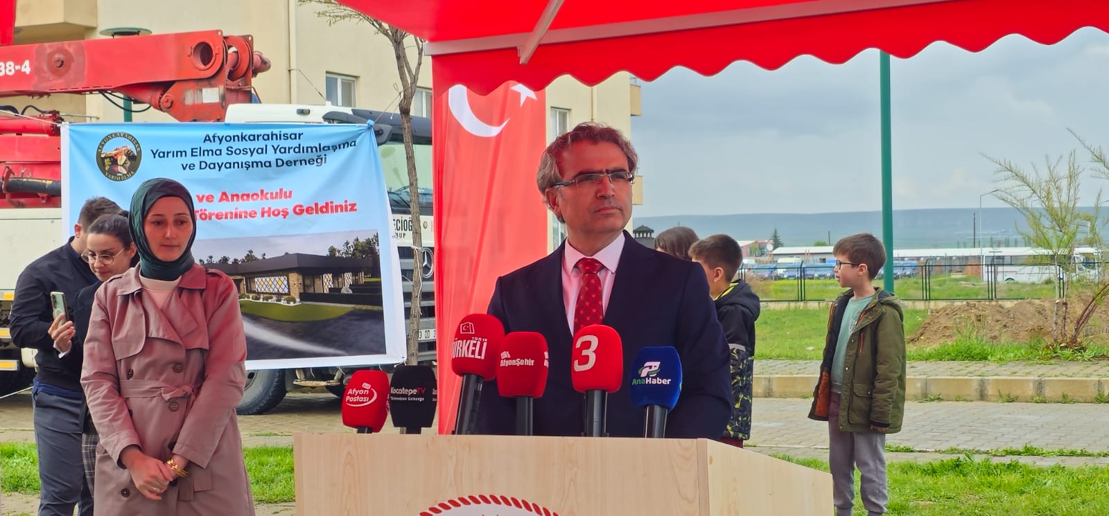 Yarım Elma Derneği Yönetim Kurulu Başkanı Erol Öztürk de dernek olarak ihtiyaç sahiplerine gıda yardımı yaptıklarını, ancak okul yaptırma fikrinin derneğin misyonuna ayrı bir anlam kattığını belirtti.