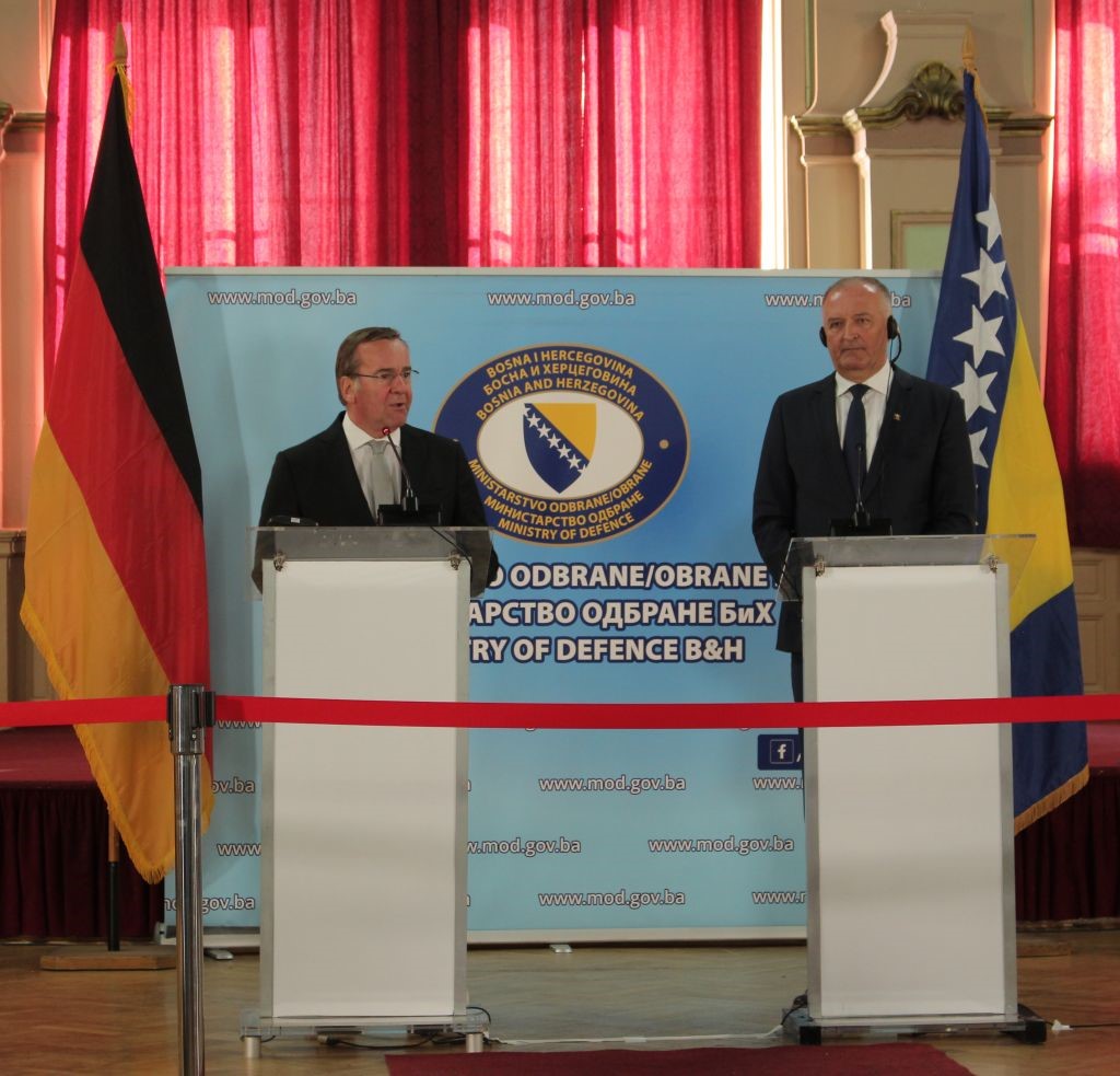 Görüşmenin ardından düzenlenen ortak basın toplantısında konuşan Pistorius, Almanya’nın Bosna Hersek’in istikrarına özel önem verdiğini ve bu nedenle ülkenin Avrupa Birliği (AB) üyeliğine destek dahil her türlü desteği sağlamak istediğini söyledi.