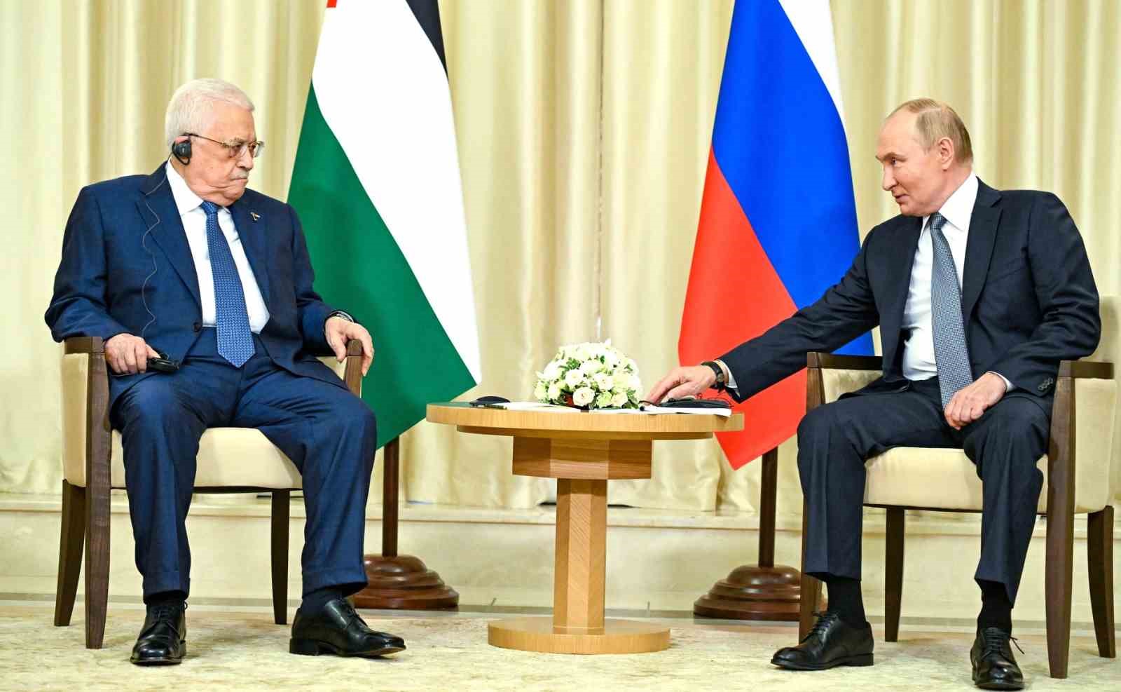 Filistin Devlet Başkanı Mahmud Abbas ise konuşmasında, “Rusya, Filistin halkı için gerçekten dost bir ülke. Filistin halkı, Sovyetler Birliği ve Rusya Federasyonu arasındaki bu dostluk, onlarca yıldır bizi birbirimize bağlıyor. Rusya’nın hükümet ve halk düzeyinde Filistinlilere desteğini her zaman hissettik” ifadelerini kullandı. Bağımsız Filistin devletinin kurulmasının önündeki engellere değinen Abbas, “BM, ABD’den gelen baskı nedeniyle tek bir çözüm sunma, Filistin halkının haklarını uygulayacak ve hayata geçirilmesini sağlayacak tek bir karar alma misyonunu yerine getiremedi” dedi. Abbas, “Sayın Başkan, size inanıyoruz, güveniyoruz ve desteğinizi hissediyoruz. Rusya’nın Filistin halkının dostlarından biri olduğunu düşünüyoruz. Toplantının başında da söylediğiniz gibi Filistin halkının da kendi devletine kavuşacağını umuyoruz. Bahsettiğiniz gibi 7 Ekim’den bugüne 40 binden fazla kişi hayatını kaybetti, 80 bine yakın yaralı, 15 binden fazla kayıp, Gazze’de olan budur” diye konuştu. İnsani yardımın sürmesini ve Filistinlilerin yaşadıkları yerlerden zorla çıkarılması girişimlerine son verilmesini isteyen Abbas, “Mücadelemizi sürdürüyoruz, tüm zorluklara sabırla göğüs geriyoruz. Filistinlilerin 20. yüzyılda, daha önce birçok kez olduğu gibi Gazze Şeridi’nden, Batı Şeria’dan, Kudüs’ten sürülmesini kabul etmeyeceğiz. Sizlerin desteğiyle hedeflerimize ulaşacağımıza inanıyoruz” ifadelerini kullandı.