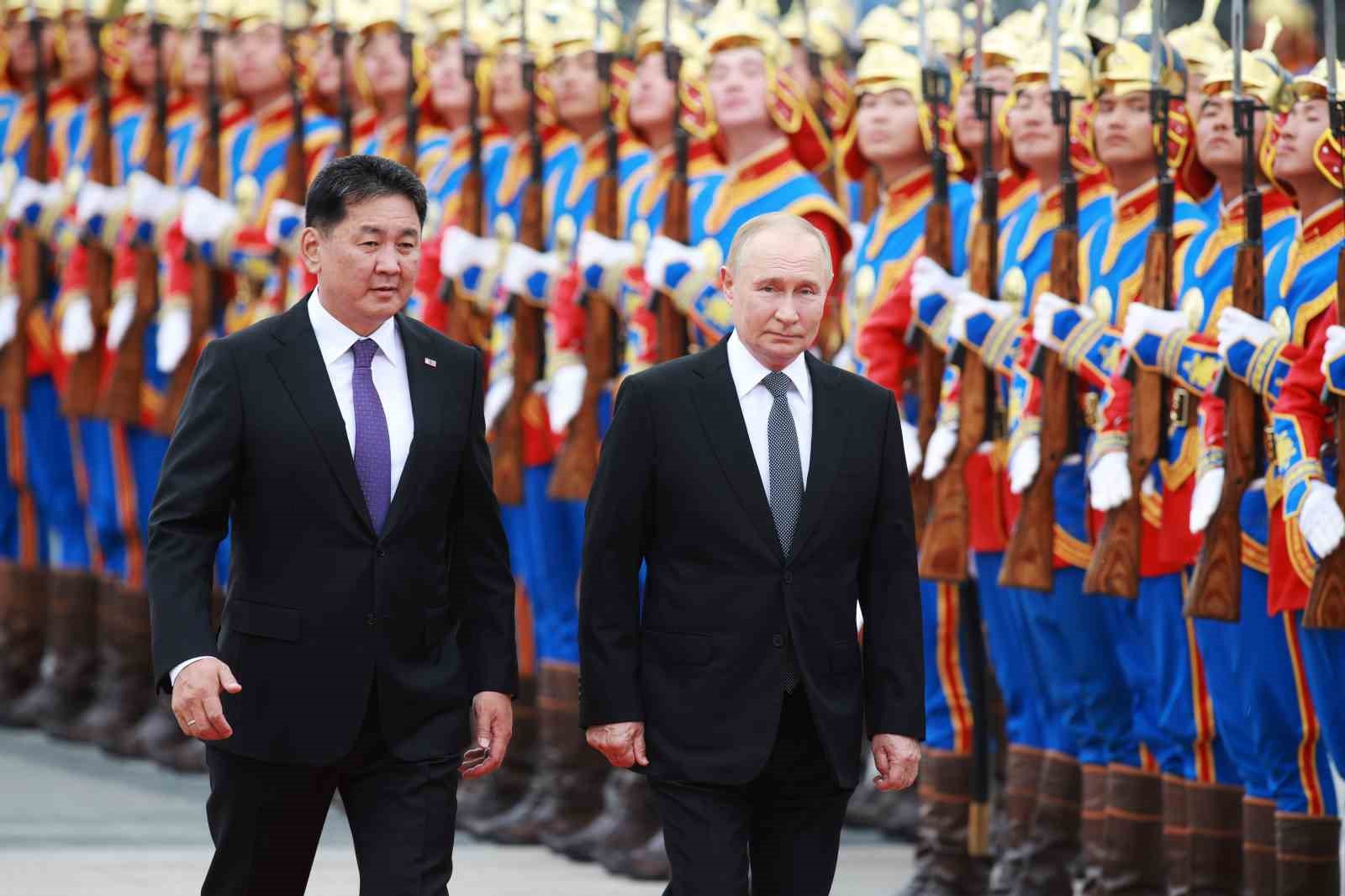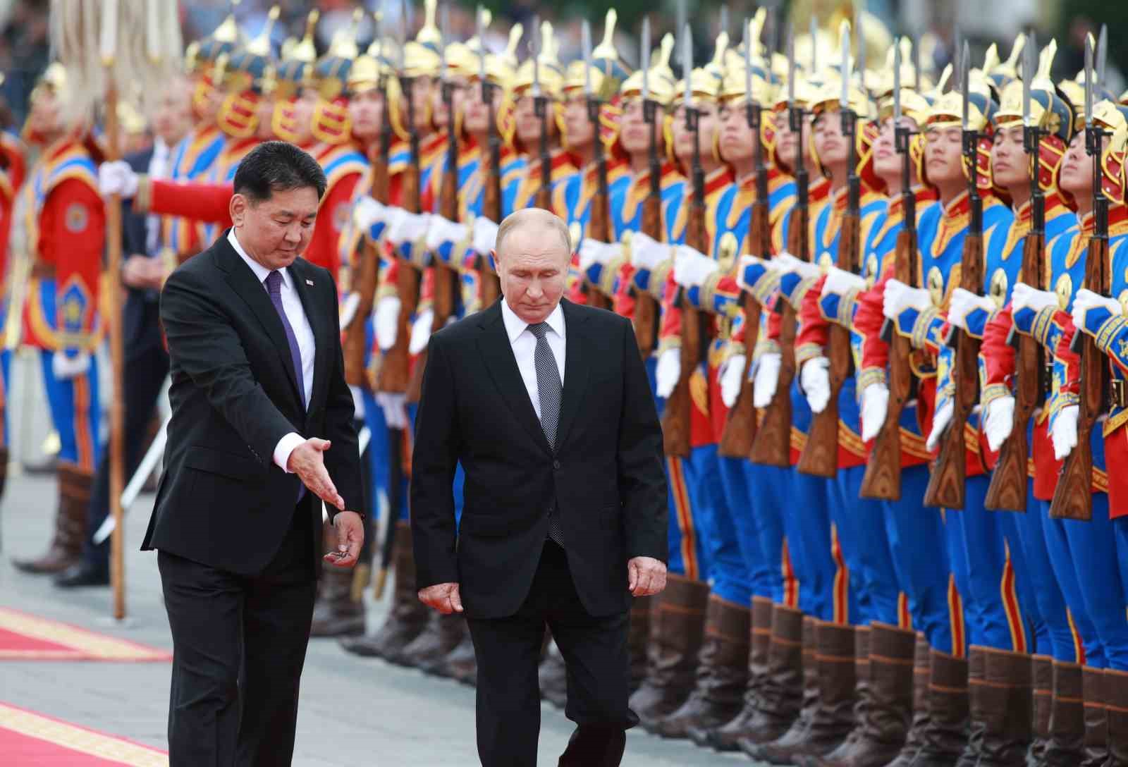 Rusya Devlet Başkanı Vladimir Putin, hakkında Uluslararası Ceza Mahkemesi (UCM) tarafından çıkarılan tutuklama emrine rağmen Moğolistan’a resmi ziyaret gerçekleştiriyor. Dün akşam saatlerinde Moğolistan’ın başkenti Ulan Batur’a gelen Putin, bugün Moğolistan Cumhurbaşkanı Ukhnaagiin Khurelsukh tarafından resmi törenle karşılandı. Rus lider, başkent Ulan Batur’un merkezindeki Sukhbaatar Meydanı’nda düzenlenen resmi karşılama töreninde iki ülke milli marşlarının çalınmasının ardından karşılama kıtasını selamladı. Daha sonra Putin ve Khurelsukh’a, iki ülke heyetleri tanıtıldı.