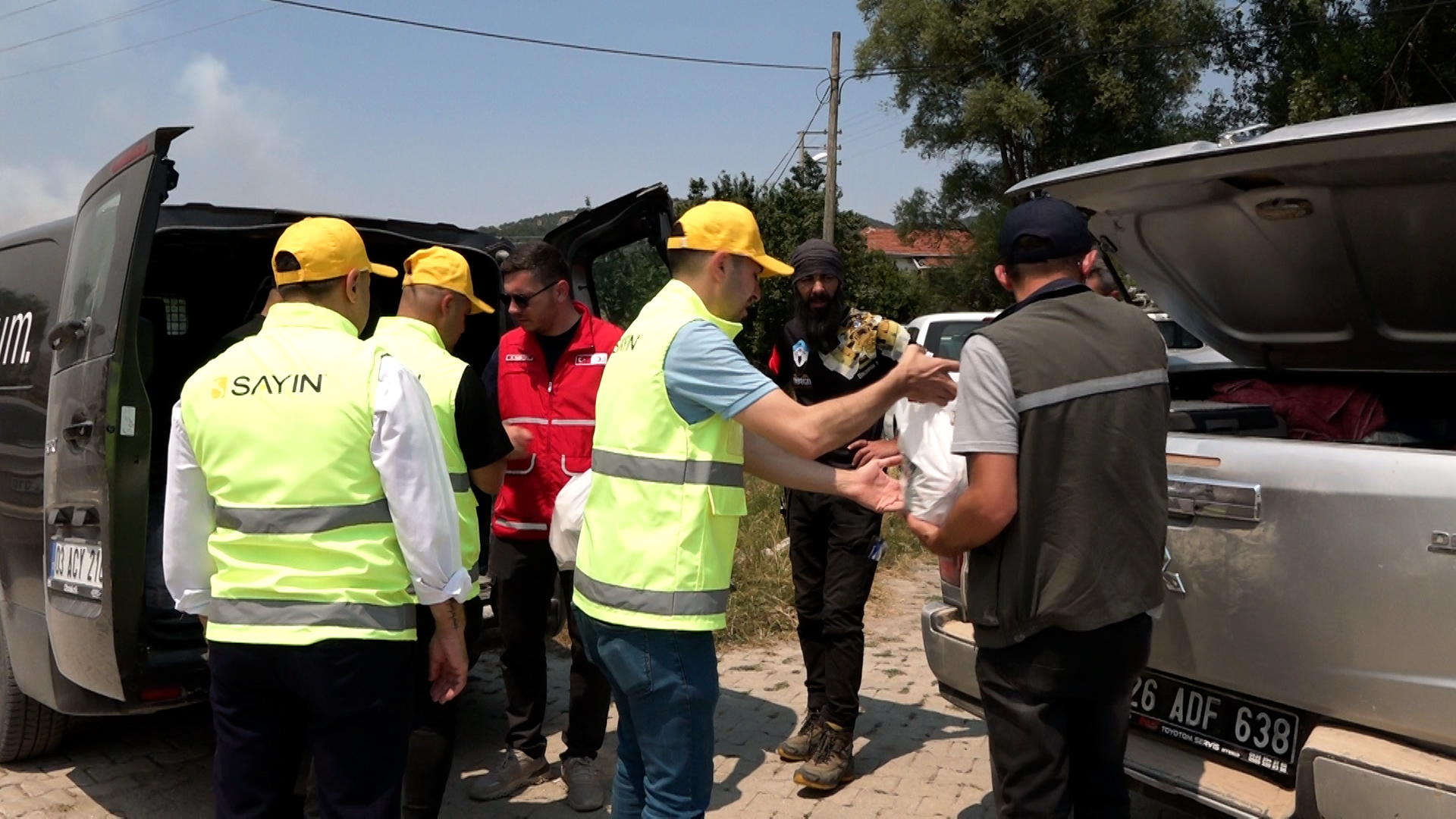 Yangın bölgesindeki zorlu koşullarda sahada görev yapan ekipler ve yangından etkilenen vatandaşlar yalnız bırakılmadı. Sayın Vakfı, bölgeye gönderdiği yemek ve içecek yardımlarıyla hem görevli personelin hem de bölge halkının yanında yer aldı.