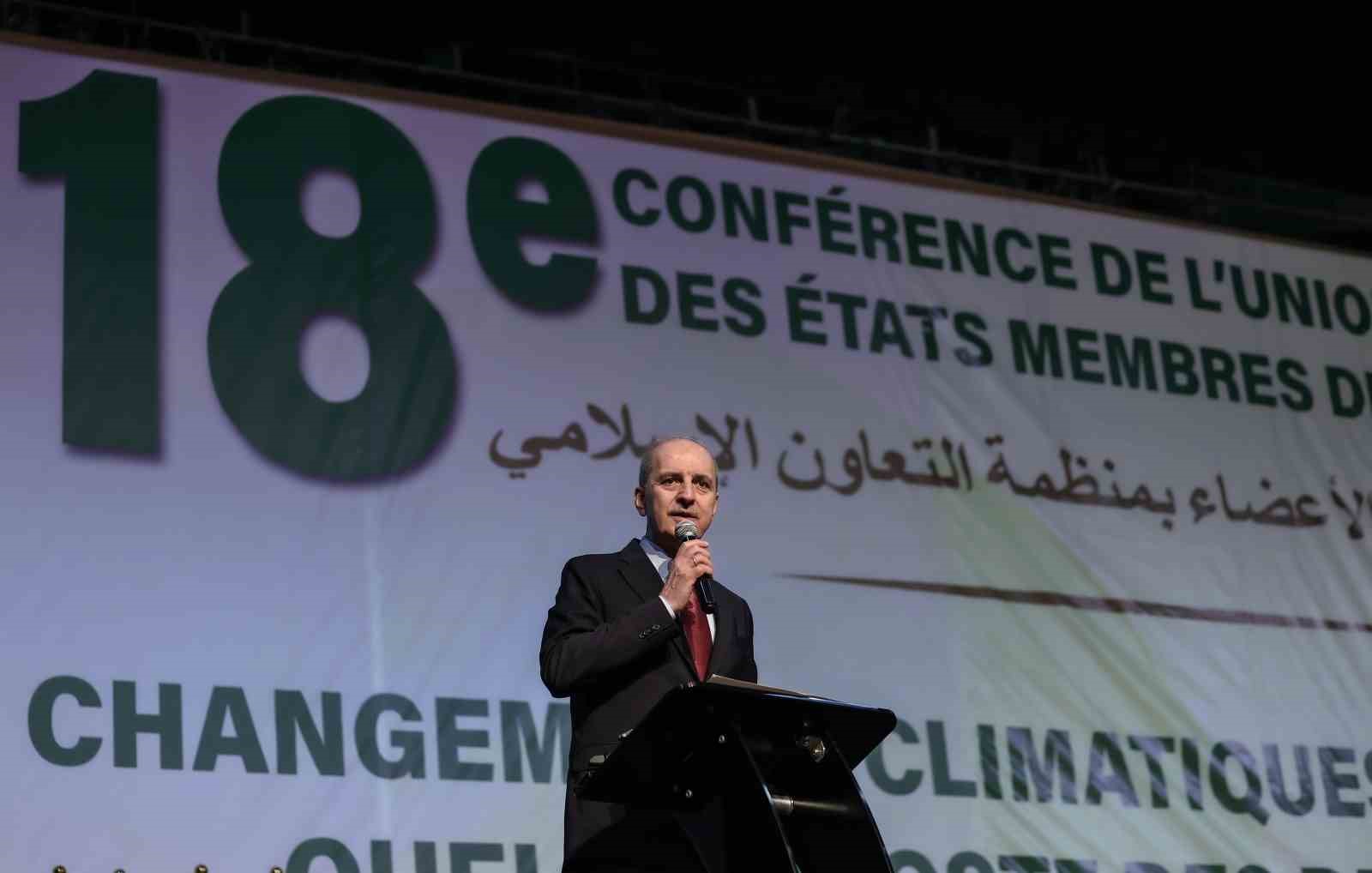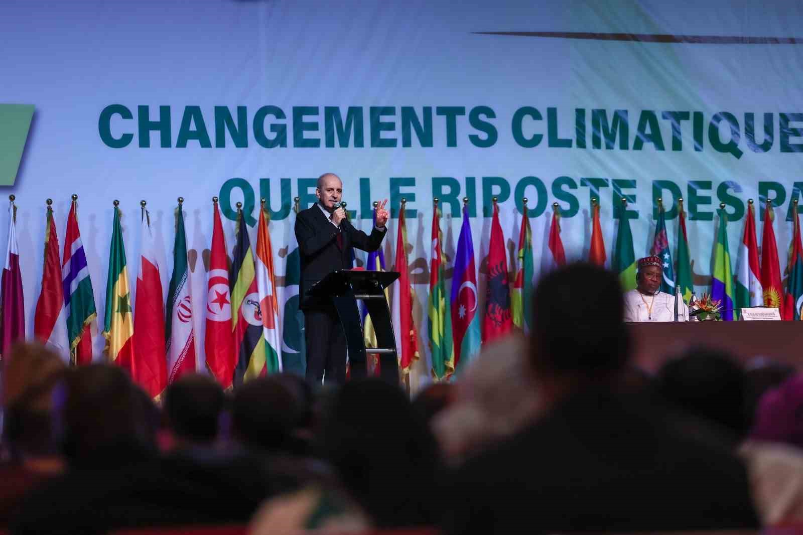 TBMM Başkanı Numan Kurtulmuş, Fildişi Sahili’nin Abidjan şehrinde düzenlenen İslam İşbirliği Parlamenter Asamblesi (İSİPAB) 18’inci Konferansı’na katıldı. Kurtulmuş, konferansta yaptığı konuşmada sözlerine Fildişi Sahili Meclis Başkanlığına İSİPAB Dönem Başkanlığı dönemlerinde başarılar dileyerek başladı. Konferansın iklim değişikliğiyle mücadele temasıyla düzenlendiğini hatırlatan Kurtulmuş, yıllardır iklim değişikliyle ilgili uluslararası alanda çok sayıda toplantının yapıldığını ve bu toplantılarda iklim değişikliğinin sadece bir sonuç olarak ele alındığını belirtti. İklim değişikliğinin arkasındaki nedenlerin fazla konuşulmadığını ifade eden Kurtulmuş, iklim değişikliğinin temel nedeninin dünyaya uzun süredir hakim olan modern düşüncenin dünyadaki bütün imkanları sömürmek ve onun üzerinden kar elde etme hırsının olduğunu söyledi.