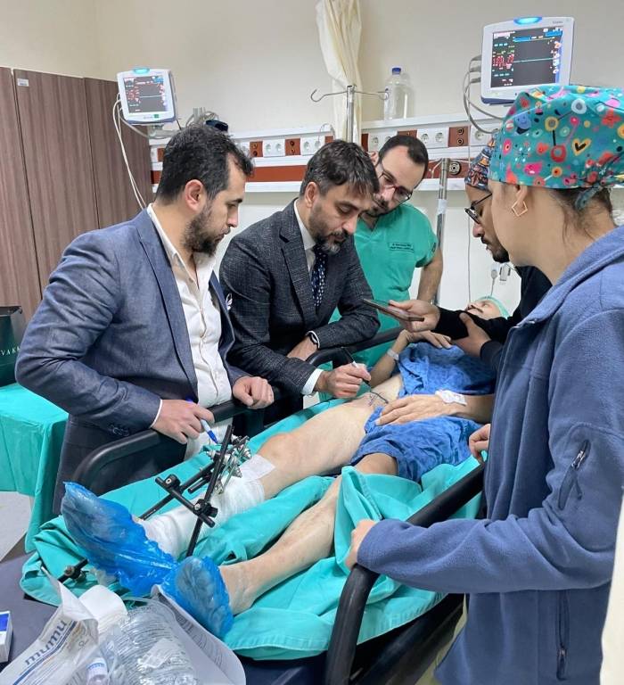 AFSÜ’de tedavi gören bir hastanın daha serbest doku nakli ameliyatı, başarıyla tamamlandı. Sağ bacağındaki açık yara sebebiyle AFSÜ Hastanesine gelen ve ilk değerlendirmede sağ bacağında doku kaybı olduğu belirlenen hastaya, Plastik, Rekonstrüktif ve Estetik Cerrahi Kliniğimizde ileri seviye tedavi uygulandı. Sağ tibia seviyesinde kemiğe kadar uzanan ve geniş bir doku kaybı bulunan hastamız, AFSÜ Hastanesinde yaklaşık 5 saat süren bir mikrocerrahi operasyonu sonrasında, Plastik, Rekonstrüktif ve Estetik Cerrahi Ana Bilim Dalı hekimlerimiz tarafından takibe alındı. Serbest doku nakli ameliyatı, mikroskop altında damarları korunarak alınan doku parçasının, açık yara bölgesine taşınmasıdır. AFSÜ’de yapılan söz konusu operasyonda ilk aşamada yaralı bölgedeki kirli ve canlılığını yitirmiş dokular temizlendi ve açık yara boyutu tespit edildi. Aynı operasyonda hastanın sağ kasığında saç teli inceliğindeki damarları korunarak alınan doku parçası, bacak bölgesindeki atar damar ve toplardamara mikroskop ve sanal gerçeklik gözlükleri kullanılarak damar damara onarım sağlandı. Ameliyat sonrasında, nakledilen dokunun tamamen canlılığını koruduğu gözlemlenirken, hastanın AFSÜ Plastik Rekonstrüktif ve Estetik Cerrahi Kliniğinde takip altında olduğu belirtildi.