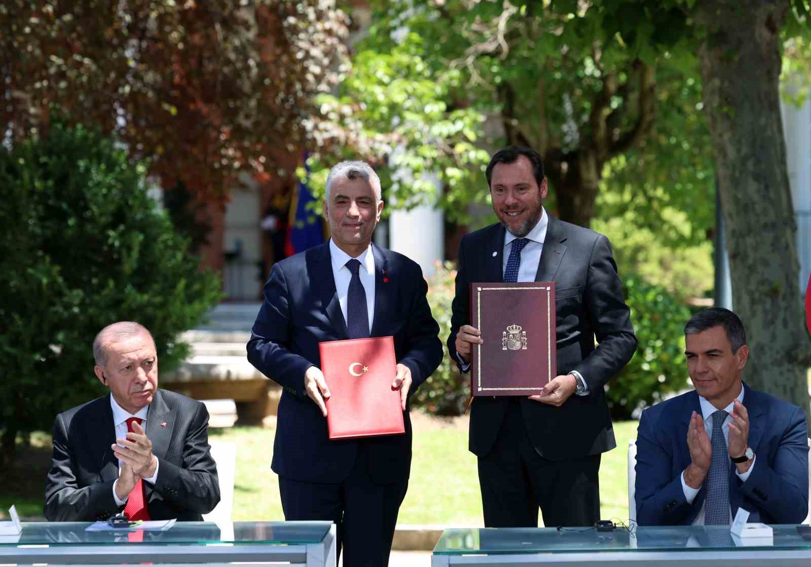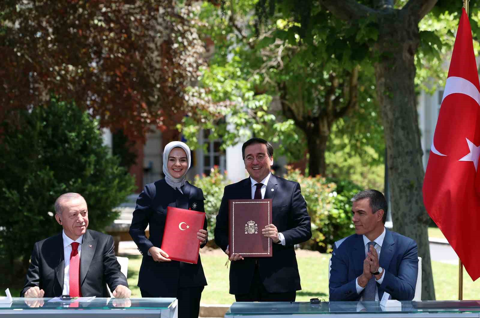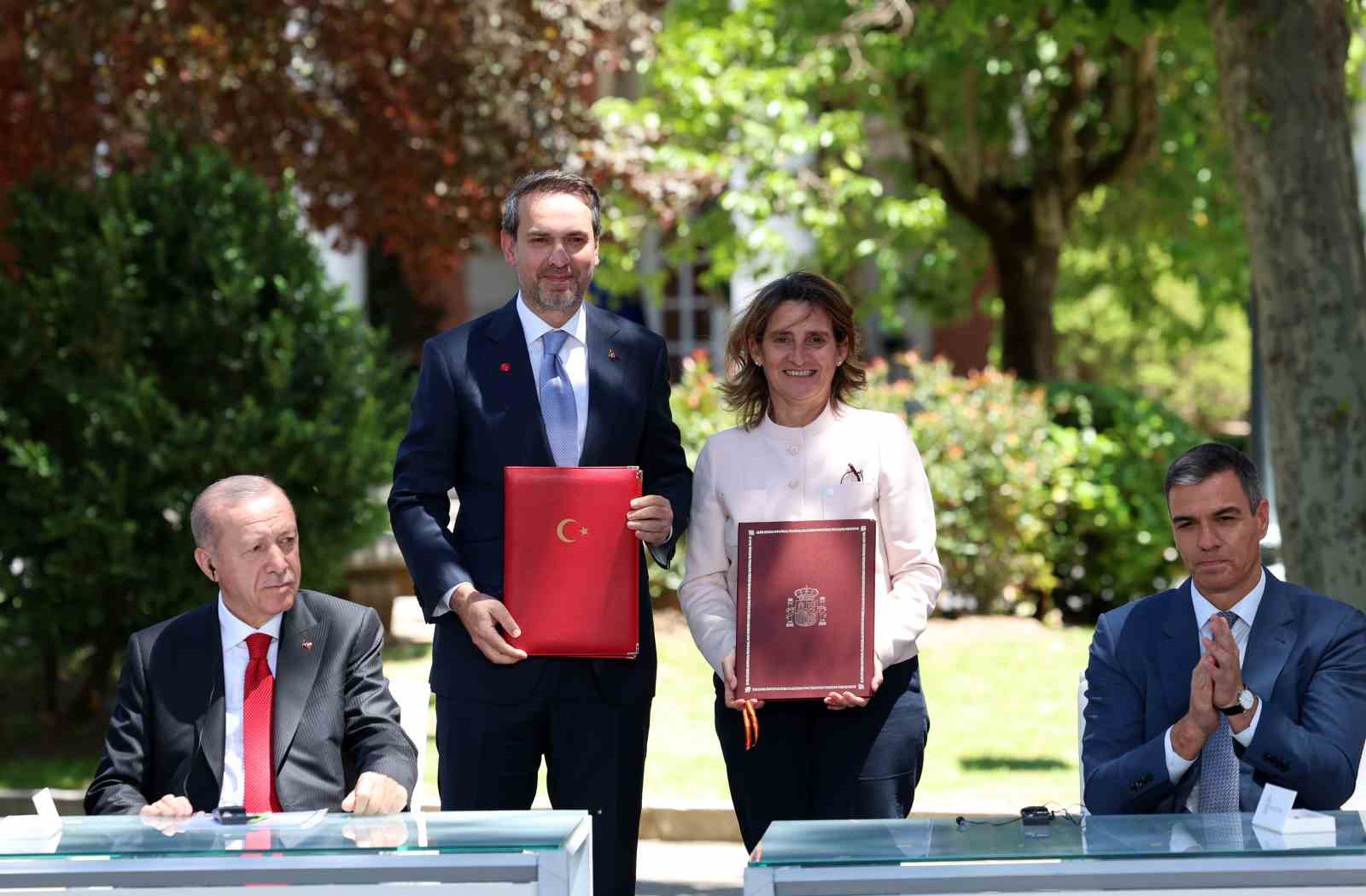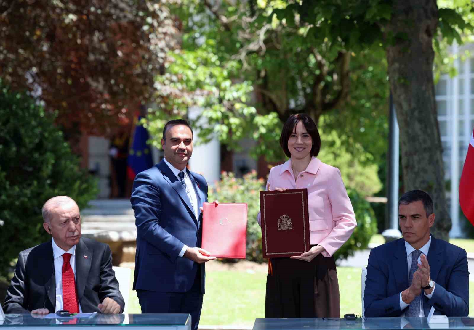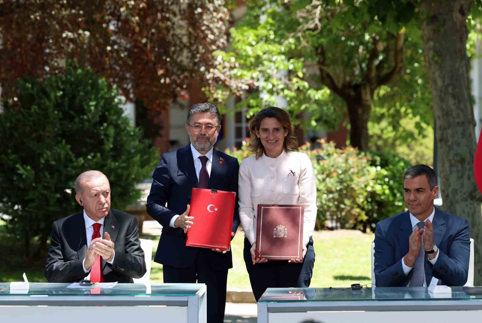 iki ülke arasında imzalanan belgelerin Çalışma ve Sosyal Güvenlik Bakanlığı ile İspanya Krallığı Çalışma ve Sosyal Ekonomi Bakanlığı Arasında Mutabakat Zaptı, Enerji ve Tabii Kaynaklar Bakanlığı ile İspanya Krallığı Ekolojik Dönüşüm ve Demografik Sınama Bakanlığı Arasında Enerji Dönüşümü Alanında Mutabakat Zaptı, Tarım ve Orman Bakanlığı ile İspanya Krallığı Ekolojik Dönüşüm ve Demografik Sınama Bakanlığı Arasında Ormancılık Alanında Ortak Eylem Planı, Yunus Emre Enstitüsü ile Cervantes Enstitüsü Arasında Mutabakat Zaptı, Millî Eğitim Bakanlığı ile İspanya Krallığı Eğitim, Mesleki Eğitim ve Spor Bakanlığı Arasında Mesleki ve Teknik Eğitim Alanında Mutabakat Muhtırası, Gemi adamlarının eğitim, belgelendirme ve vardiya standartlarına dair STWC unvanlarının tanınmasına ilişkin Mutabakat Zaptı, Türk Eximbank ile İspanyol İhracat Kredi Ajansı (CESCE) Arasında İmzalanan Mutabakat Zaptı Hakkında Deklarasyon, Sigorta ve Özel Emeklilik Düzenleme ve Denetleme Kurumu ile İspanya Sigorta ve Emeklilik Fonları Genel Müdürlüğü arasında Mutabakat Zaptı, Sanayi ve Teknoloji Bakanlığı ile İspanya Krallığı Bilim, Yenilikçilik ve Üniversiteler Bakanlığı Arasında Bilimsel ve Teknolojik İşbirliği Mutabakat Zaptı, Sanayi ve Teknoloji Bakanlığı ile İspanya Krallığı Bilim, İnovasyon ve Üniversiteler Bakanlığı Arasında Uzay Çalışmalarında Barışçıl Amaçlar Doğrultusunda İşbirliğine İlişkin Mutabakat Zaptı, Aile ve Sosyal Hizmetler Bakanlığı ile İspanya Krallığı Kapsayıcılık, Sosyal Güvenlik ve Göç Bakanlığı Arasında İşbirliğine Dair Mutabakat Zaptı olduğu aktarıldı.