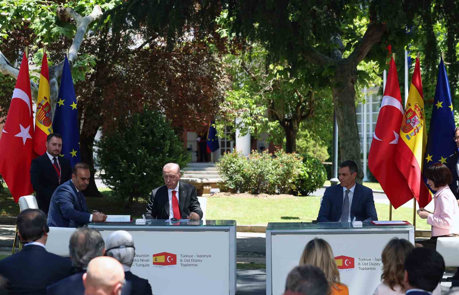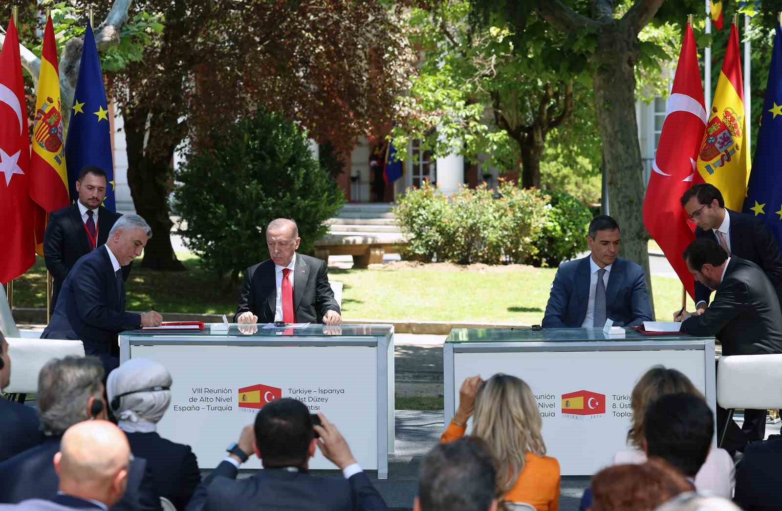 Cumhurbaşkanı Recep Tayyip Erdoğan, başkent Madrid’de İspanya Başbakanı Pedro Sanchez ile düzenlediği törende iki ülke arasında birçok alanı içeren 11 belgeye imza attı.