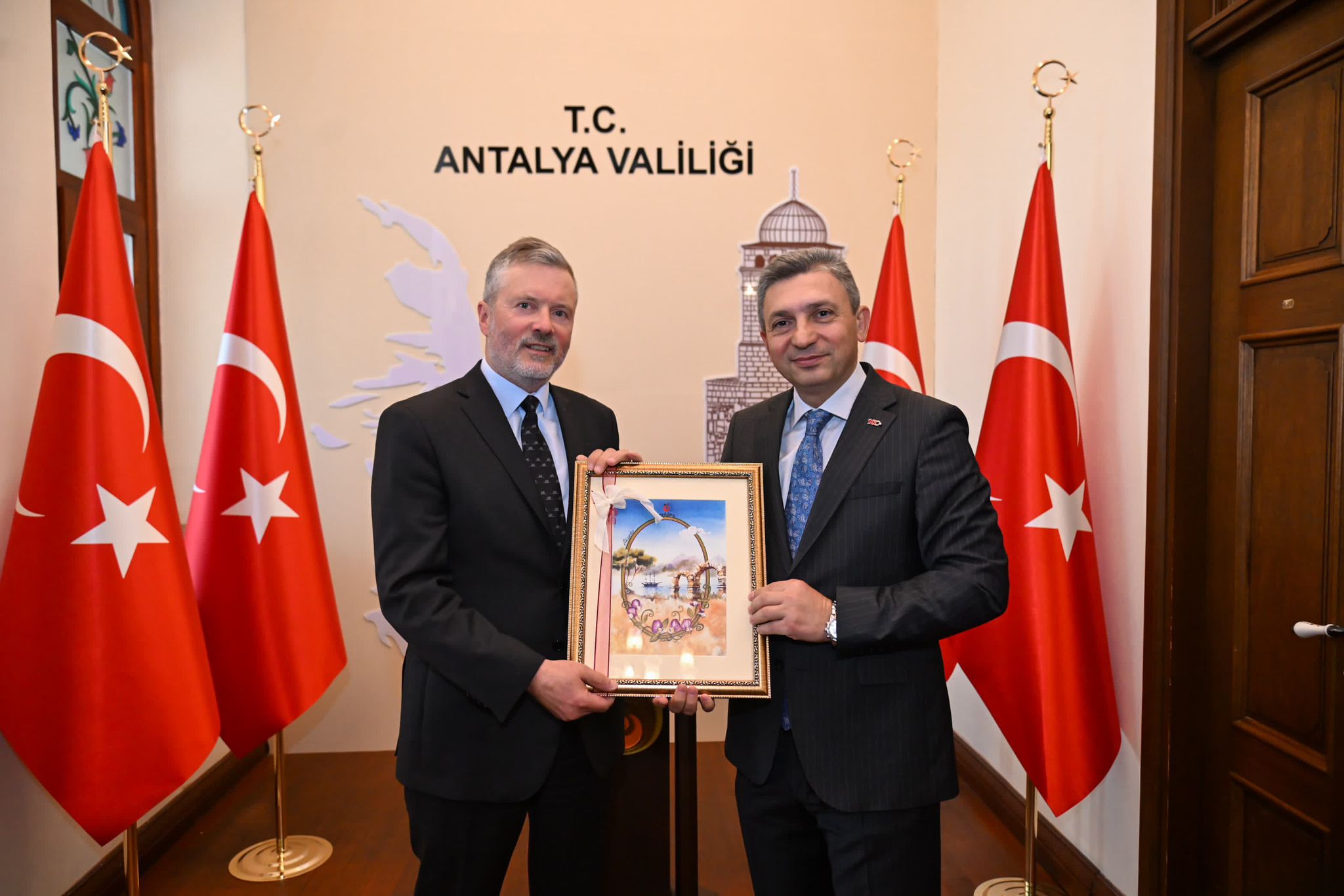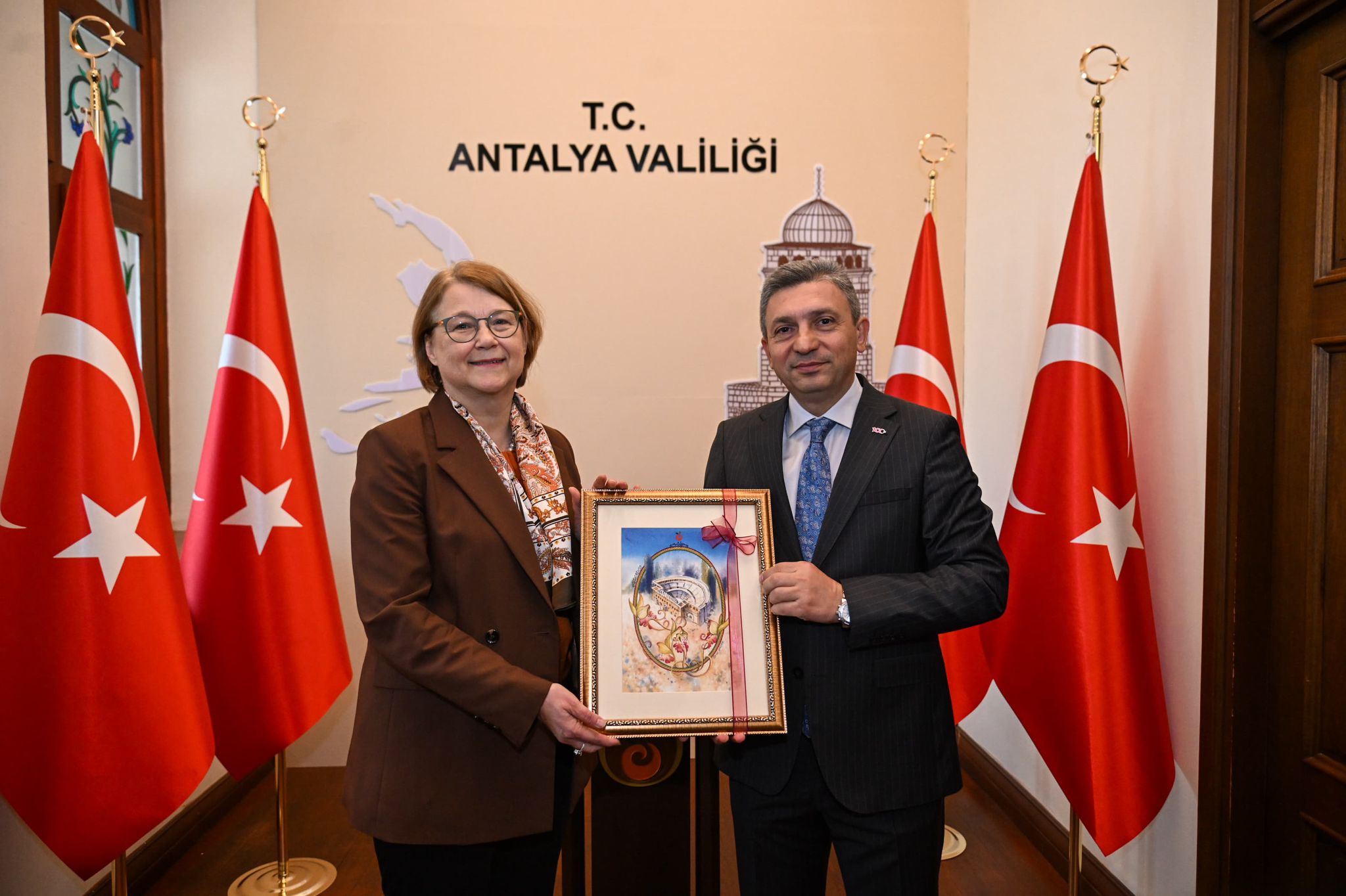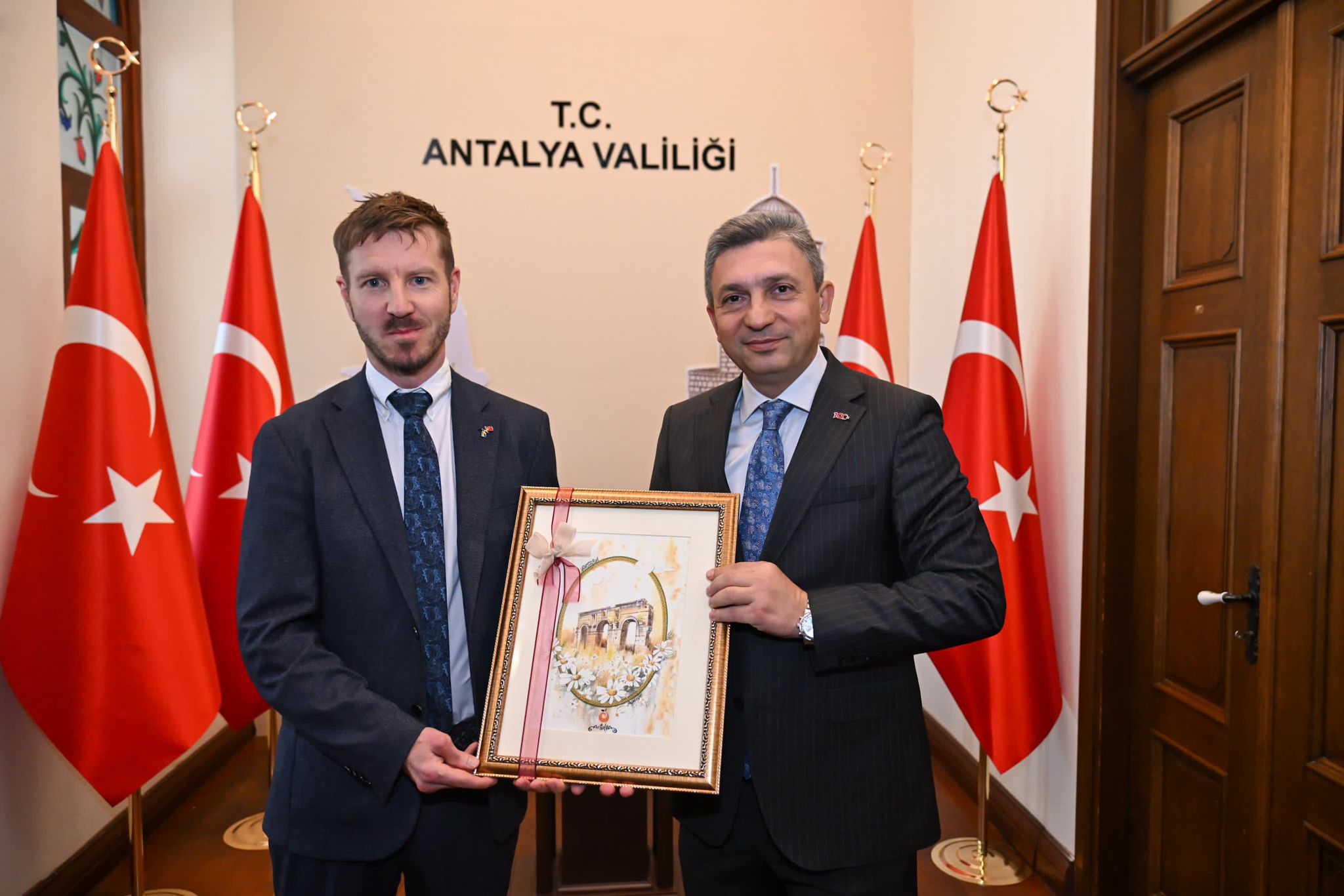 Antalya Valisi Hulusi Şahin, Finlandiya Büyükelçisi Pirkko Mirjami Hamalainen, Danimarka Büyükelçisi Danny Annan, Norveç Büyükelçisi Andreas Gaarder, İsveç Başkonsolos Vekili Martin Fredriksson ve beraberindeki heyeti tarihi Hükümet Konağındaki Valilik Makamında kabul etti.