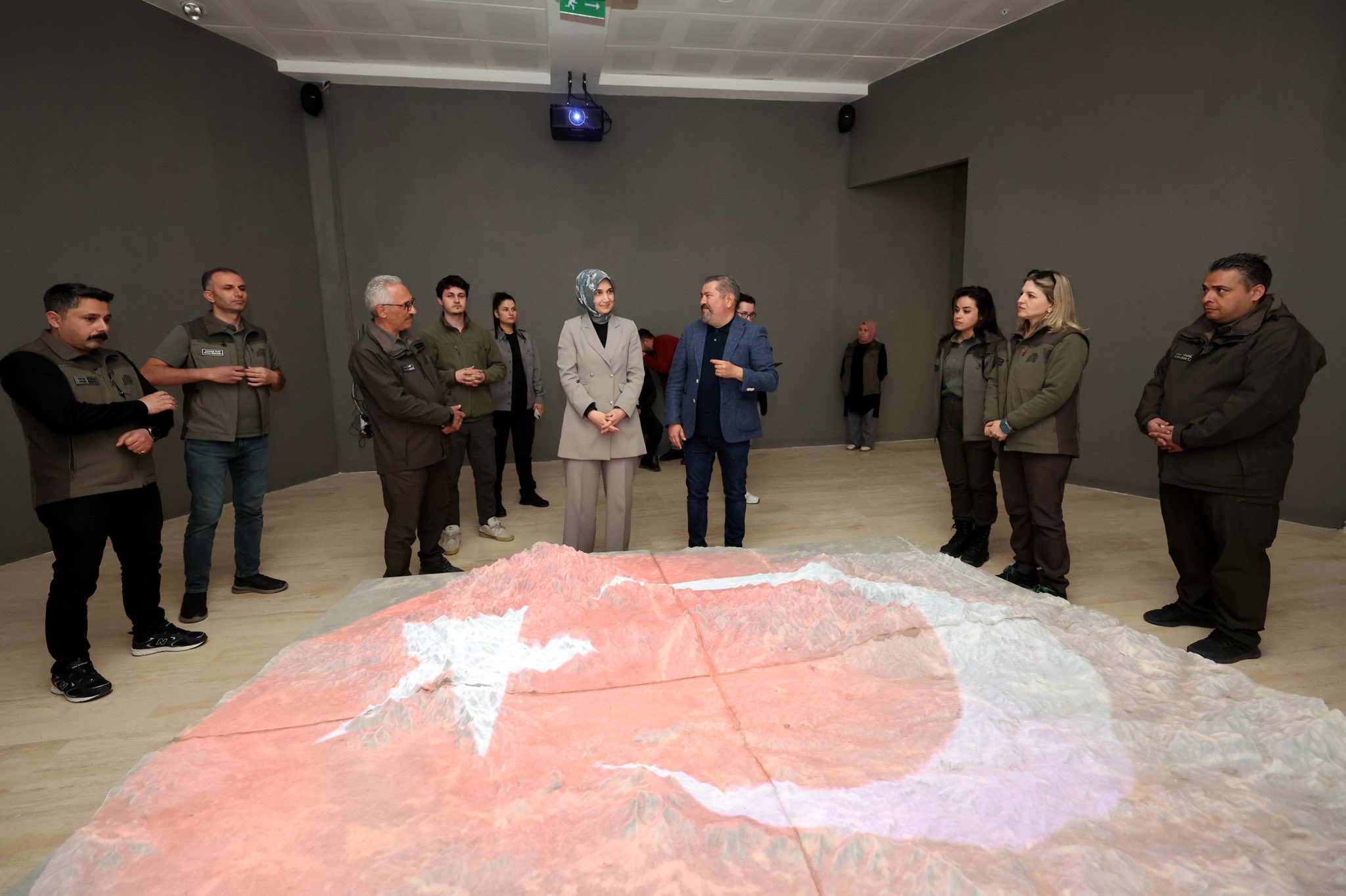 Sanat ve teknolojinin imkânlarından yararlanılarak modernize edilen merkezdeki çalışmaları yerinde inceleyen Vali Yiğitbaşı, Tarım ve Orman Bakanlığı 5. Bölge Müdürü Kemal Can ile Ardin Müze ve Sergi Teknolojileri Firma Sahibi Cenk Kabaş’tan, yazılı ve görsel materyaller ile dijital sunum teknikleri hakkında detaylı bilgi aldı.
