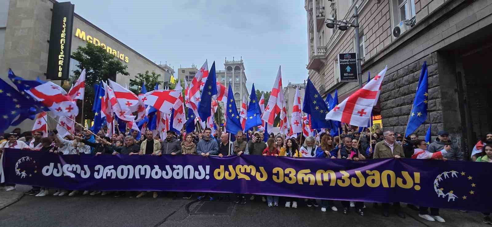 Gürcistan’da 15 Nisan’dan bu yana devam eden “Yabancı Etkinin Şeffaflığı” yasa tasarısına yönelik protestolar devam ediyor. Başkent Tiflis’teki Cumhuriyet Meydanı, Marjanişvili Meydanı, 300 Aragveli Meydanı ve Expo Georgia’nın önünde toplanan binlerce kişi, “Yabancı Etkinin Şeffaflığı” yasa tasarısını bir kez daha protesto etti. Protestoya yaklaşık 50 bin kişinin katıldığı tahmin edilirken, göstericiler, sık sık “Yaşasın Gürcistan” ve “Rus yasasına hayır, Avrupa’ya evet” sloganları atarak Avrupa Meydanı’na doğru yürüdü.