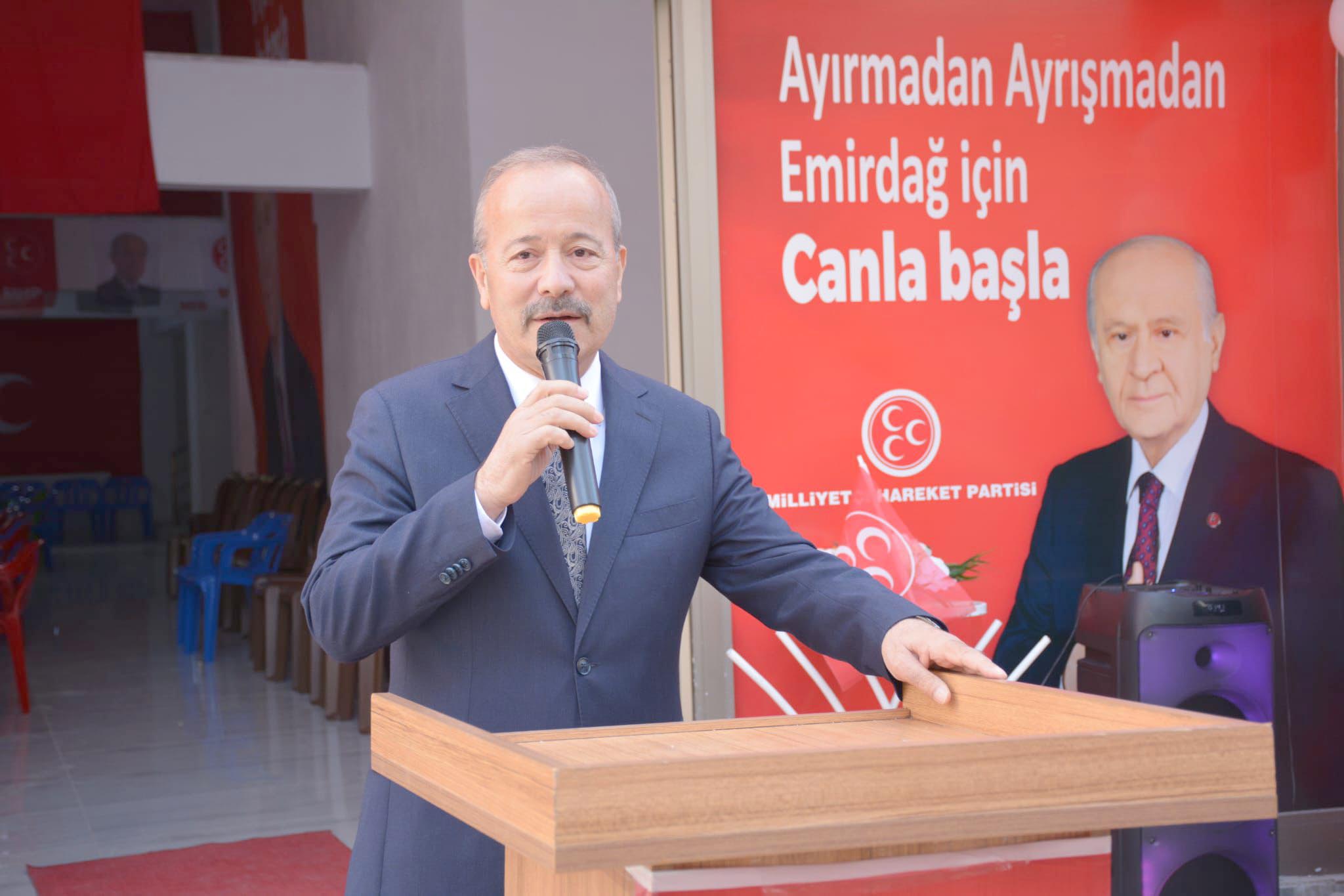 Taytak, “Artık bundan sonraki dönemlerde fikir ve düşüncelerimizi ortaya koyacak ve yerel manada Türkiye genelinde çok ciddi Milliyetçi Hareket Partili belediyelerin daha çok olduğu Türkiye olacak inşallah. Bunlardan bir tanesi de Emirdağ ilçemiz olacak. Burada 3 belediyemizde 3 hilali dalgalandıracağız. Seçim gezilerimizde söylediğimiz gibi belediye başkan adaylarımızın meydanlarda vermiş oldukları sözlerin arkasındayız. Milliyetçi Hareket Partisi’nin İl genelinde 17 belediyesi var. Başkan adaylarımızın seçimler öncesi vermiş oldukları sözleri kısa zaman içerisinde yerine getirdik. İnşallah bu dönemde aynı azimle çalışarak başkan adaylarımızın belediye başkanı seçildikten sonra vatandaşlarımıza vermiş oldukları sözleri teker teker yerine getireceğiz. Çünkü, arkamızda devlet, gönlümüzde millet, aklımızda hizmet var” dedi.