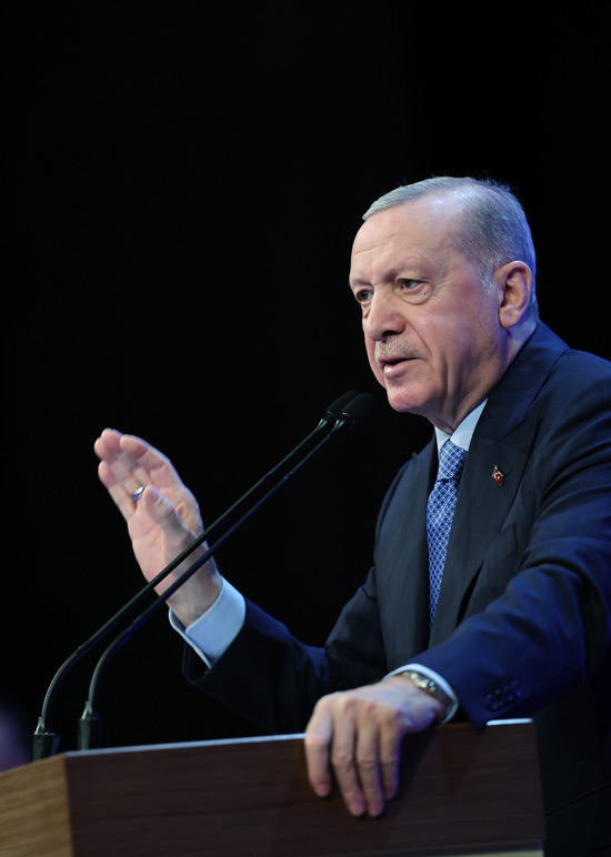 Cumhurbaşkanı Erdoğan konuşmasının devamında, “Yorulmuş, tükenmiş, gelecekten ümidini kesmiş, karamsarlık girdabında sürüklenen bir milletin umutlarını yeniden dirilttik. Milletimiz, AK Parti’de yıllar sonra kendini gördü. Kendi değerlerini temsil eden, samimi, liyakatli, gayretli ve Türkiye sevdalısı kadroları gördü. Kuruluşumuzun üzerinden yalnızca 14 ay geçmişken, aziz milletimizin takdiri ile ülkeyi yönetme sorumluluğunu işte bu yüce ruhla üstlendik. Türkiye’yi yönetme mesuliyetini devraldığımız andan itibaren milletimize karşı görevlerimizi hakkıyla yerine getirmenin çabasındayız. Problemlerin karmaşıklığı karşısında ürken, çekinen, korkan değil tam tersine ne kadar büyük olursa olsun meselelerin üzerine cesaretle giden ve çözüme odaklanan bir anlayışla hareket ediyoruz” ifadelerini kullandı.>>> Ahmet Çetinkaya