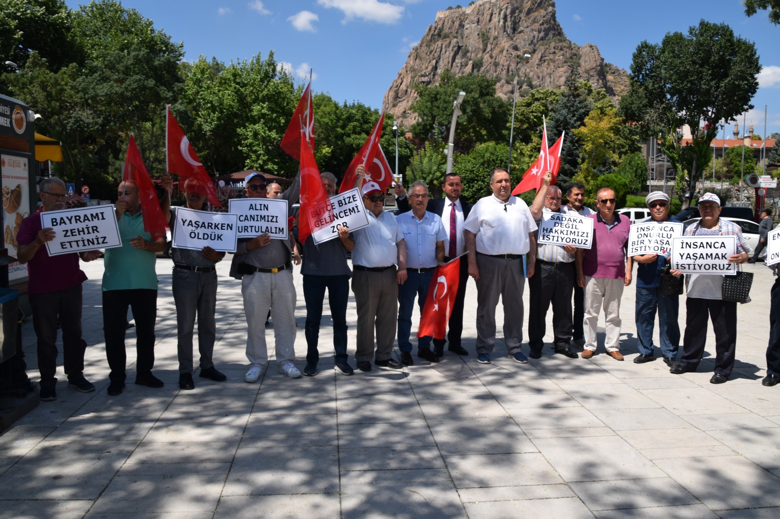 Zafer Meydanı’nda bir basın açıklaması yapan İYİ Parti İl Başkanı Muhammet Mısırlıoğlu, 2024 Emekliler Yılı değil ama emeklilerin açlık ve sefalet yılı. Ev kirasını ödeyemeyen, açlık sınırının altında yaşam mücadelesi veren emeklimize dalga geçer gibi öğrenci yurtlarında konaklayın, tatile gidin diyorlar” dedi.