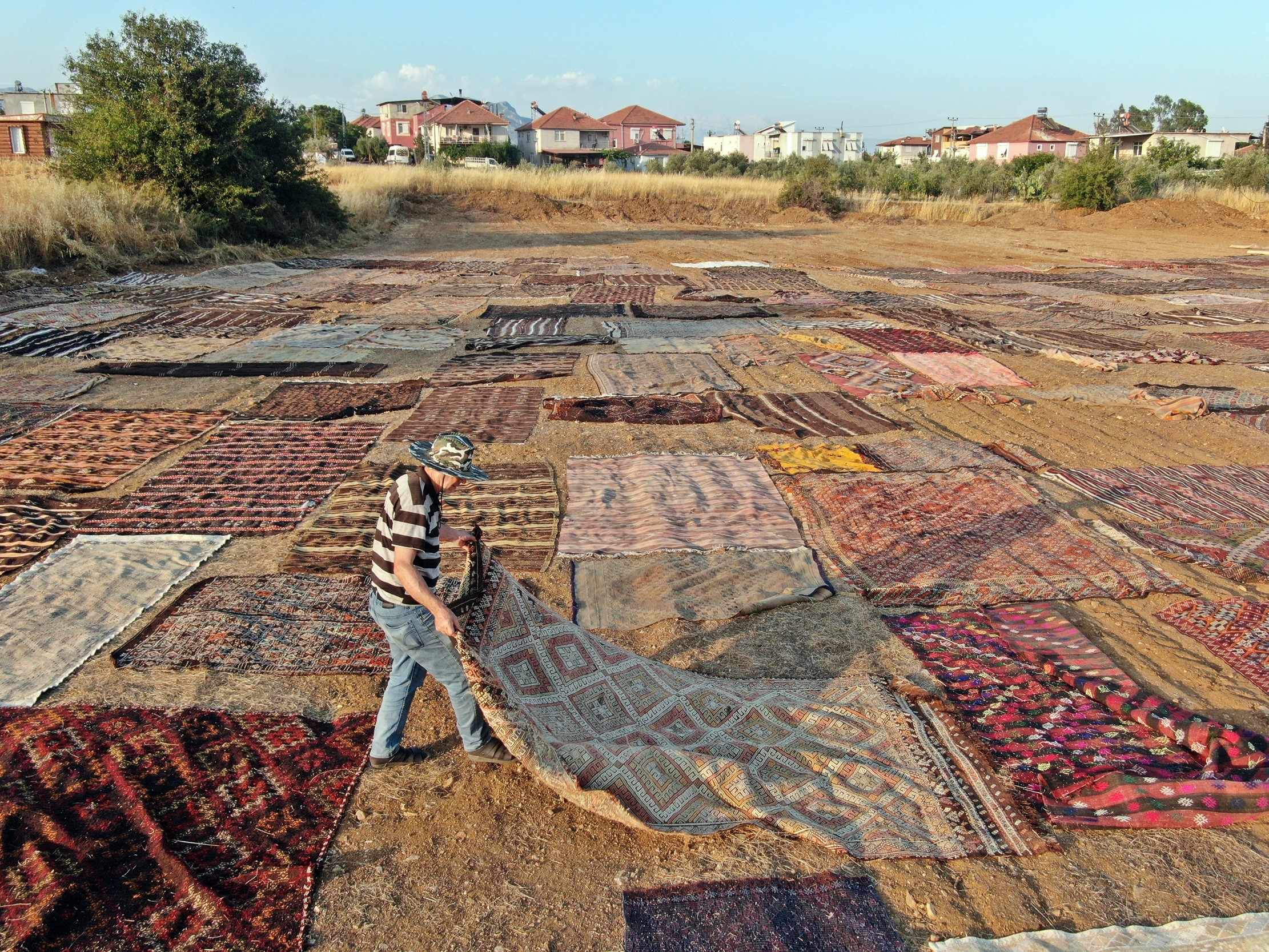 Türkiye’nin dört bir yanından ve yurt dışından gelen 15 bine yakın el dokuması halı ve kilim, restore edilip mikroplardan arındırılmak üzere Antalya’nın Döşemealtı ilçesindeki buğday tarlalarına seriliyor. Arazi sahipleri, tarlaya serilen serilen milyonluk halıları hırsızlık, yağmur ve yabani hayvanların zarar vermesine karşı korumak için sabahlara kadar nöbet tutuyor.