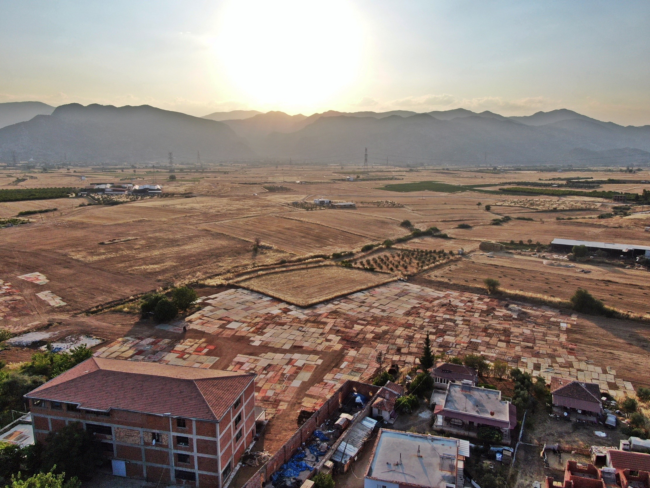 Antalya’nın Döşemealtı ilçesindeki bazı mahallelerde yer alan tarım arazileri, kışın buğday ekimine yaz aylarında ise halı işletmelerine açılıyor. Arazi sahipleri ya da işletmeler, aralarında 50 yılın üzerinde olanların da bulunduğu halı ve kilimleri önce tamir ediyor, ardından mikroplardan arındırmak için steril havuzlara sokuyor. Onarım ve sterilizasyon işleminin ardından güneşe serilen halı ve kilimlerin renkleri soldurulup, pastele dönüşmesi sağlanıyor. Milyonluk değere sahip halı ve kilimler, güneşin altında belirli aralıklarla tersi ve düzü çevrilerek nemi ve sıcağı iyi şekilde alması ve renklerin tonlamasının sağlamlaşması sağlanıyor. Serildikleri alanı “halı tarlasına” çeviren el dokuması halı ve kilimler tam bir renk cümbüşü oluştururken, güneşin altında mikroplardan arınıp, renk tonları oturduktan sonra sahiplerine teslim ediliyor.